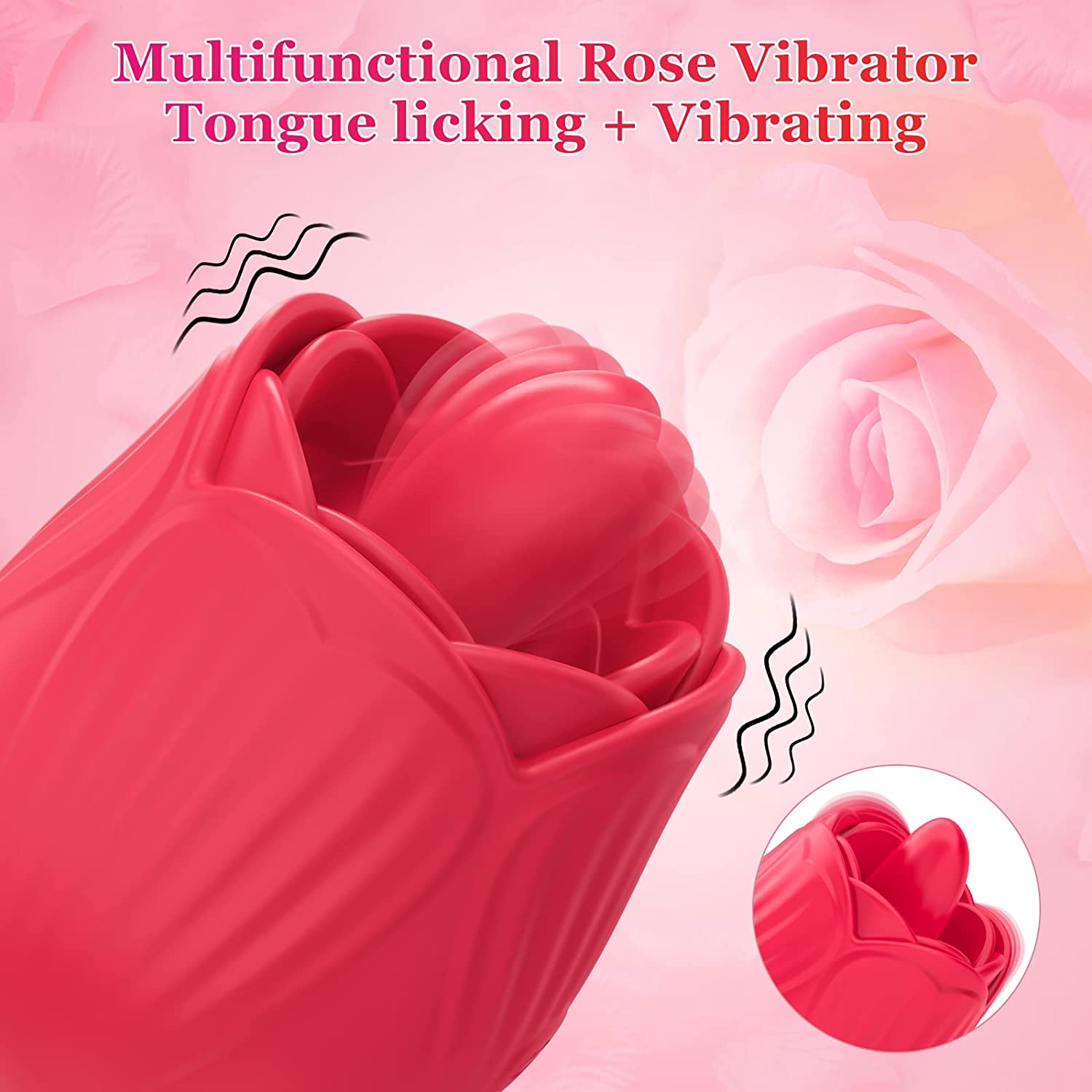 Rose Toy Vibrator for Women, Clitoral Licking Tongue Vibrator, Clitoris Nipples Anal Stimulator with 10 Licking 10 Vibration Modes, Waterproof Rechargeable Adult Sensory Sex Toys for Women Couples