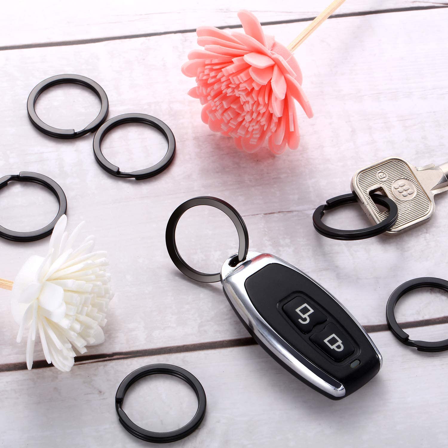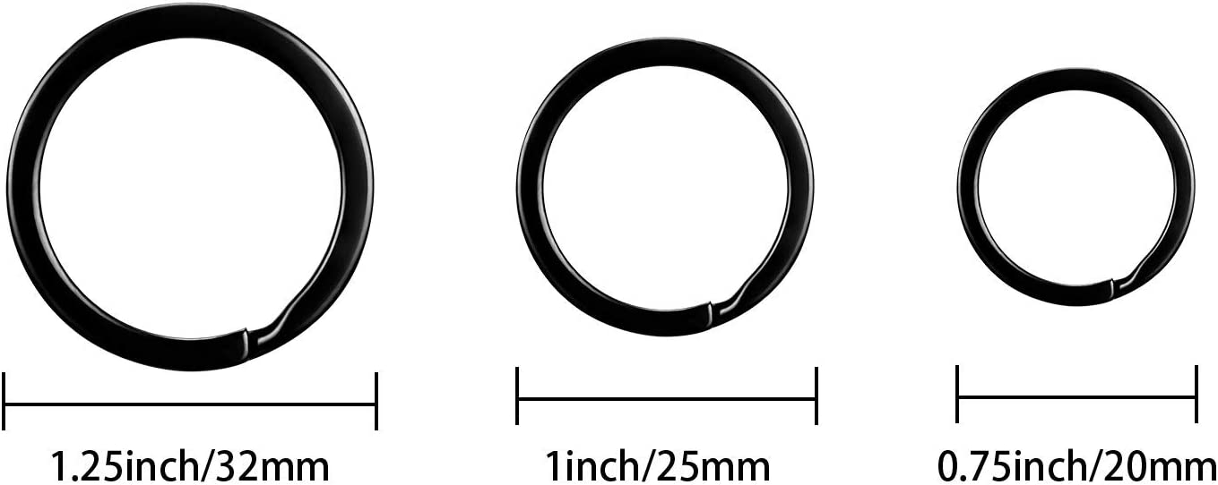 Round Flat Key Rings Key Chain Small Metal Split Ring for Home Car Keys Organization, 30 Pieces (Black, 3/4 Inch, 1 Inch and 1.25 Inch)