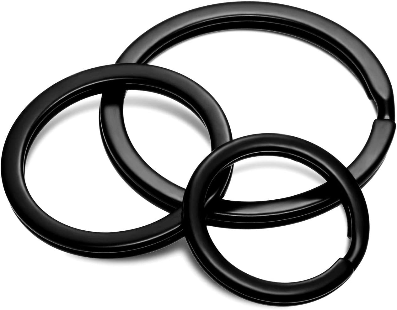 Round Flat Key Rings Key Chain Small Metal Split Ring for Home Car Keys Organization, 30 Pieces (Black, 3/4 Inch, 1 Inch and 1.25 Inch)