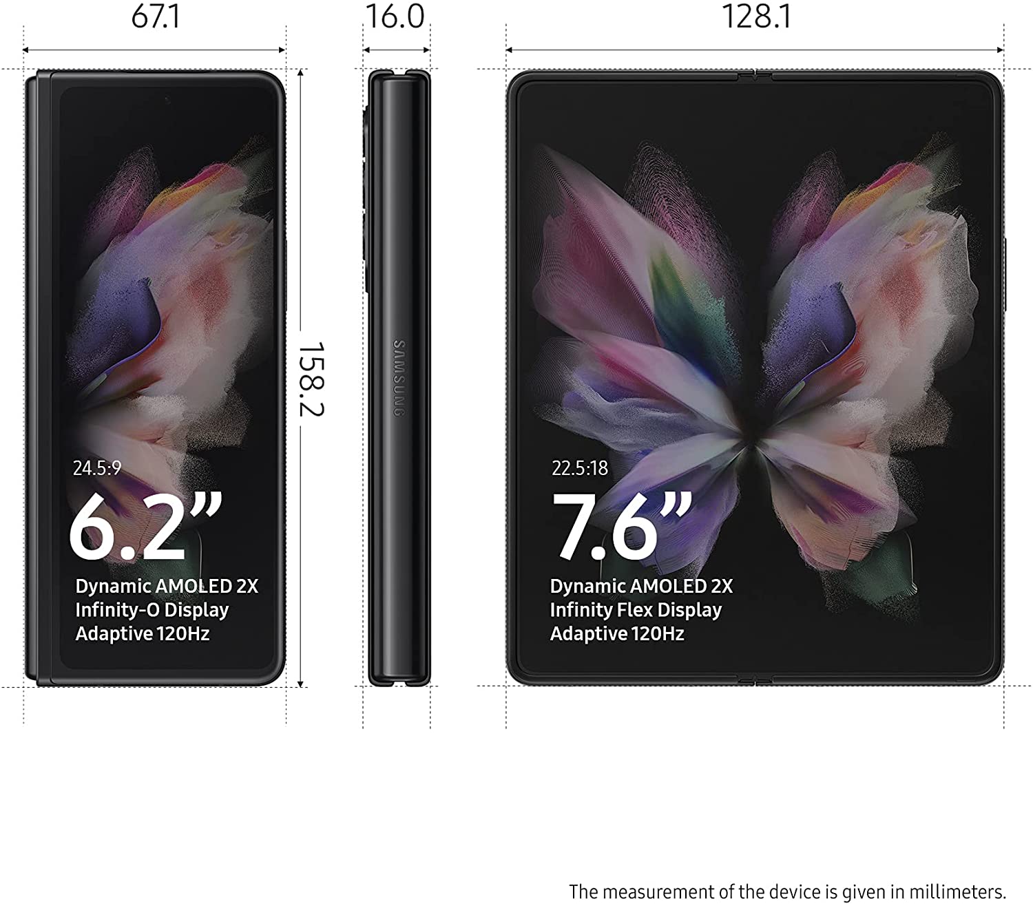 See more and do more with the Samsung Galaxy Z Fold3 smart phone, that has the ultimate foldable screen putting a workspace, theater, and game room right in your pocket. The sleek cover display unfolds to double the size, providing one expansive 7.6” edge-to-edge display that’s like a tablet. Our first-ever Under Display Camera provides an incredible uninterrupted view. We’ve put an ultra dynamic AMOLED display on our super expansive screen. Work and play in any light with a high-contrast ratio and an adaptive 120 Hz refresh rate on the main screen, plus intuitive blue light management that automatically adjusts based on the time of day. Work smarter not harder and from virtually anywhere on this powerful multifaceted cellphone that makes multitasking a breeze. Drag and drop text, pictures, and graphs across different apps. Or pull up multiple docs at once to reference and edit at the same time. And now with our revolutionary S Pen, you can even jot down notes while video calling. Send an email in a flash, enjoy smooth gaming, and upload every moment with 5G connectivity. Galaxy Z Fold3 is water-resistant and made with our strongest aluminum frame for enhanced protection. Unfold a new world of benefits with exclusive Z Premier perks, created just for Galaxy Z owners.Measured diagonally, the screen size is 7.6" in a full rectangle and 7.4" accounting for the rounded corners. The actual viewable area is smaller due to the rounded corners and camera hole.Compatible with S Pen Fold Edition and S Pen Pro only, sold separately. Works with main display only.Multi Active Window works with select applications; compatible apps growing through third party developers.Drag and drop functionality works with select applications.5G speeds vary and require optimal network and connection (Factors include frequency, bandwidth, congestion); see carrier for available.Super fast (25 W) charger sold separately. Use only Samsung approved chargers and cables; do not use any worn or damaged chargers or cables; incompatible charger or cable can cause serious injuries or damage to your mobile device.Has an official IPX8 rating. Water resistant in up to 5 feet of freshwater for up to 30 minutes. Rinse residue/dry after wet.