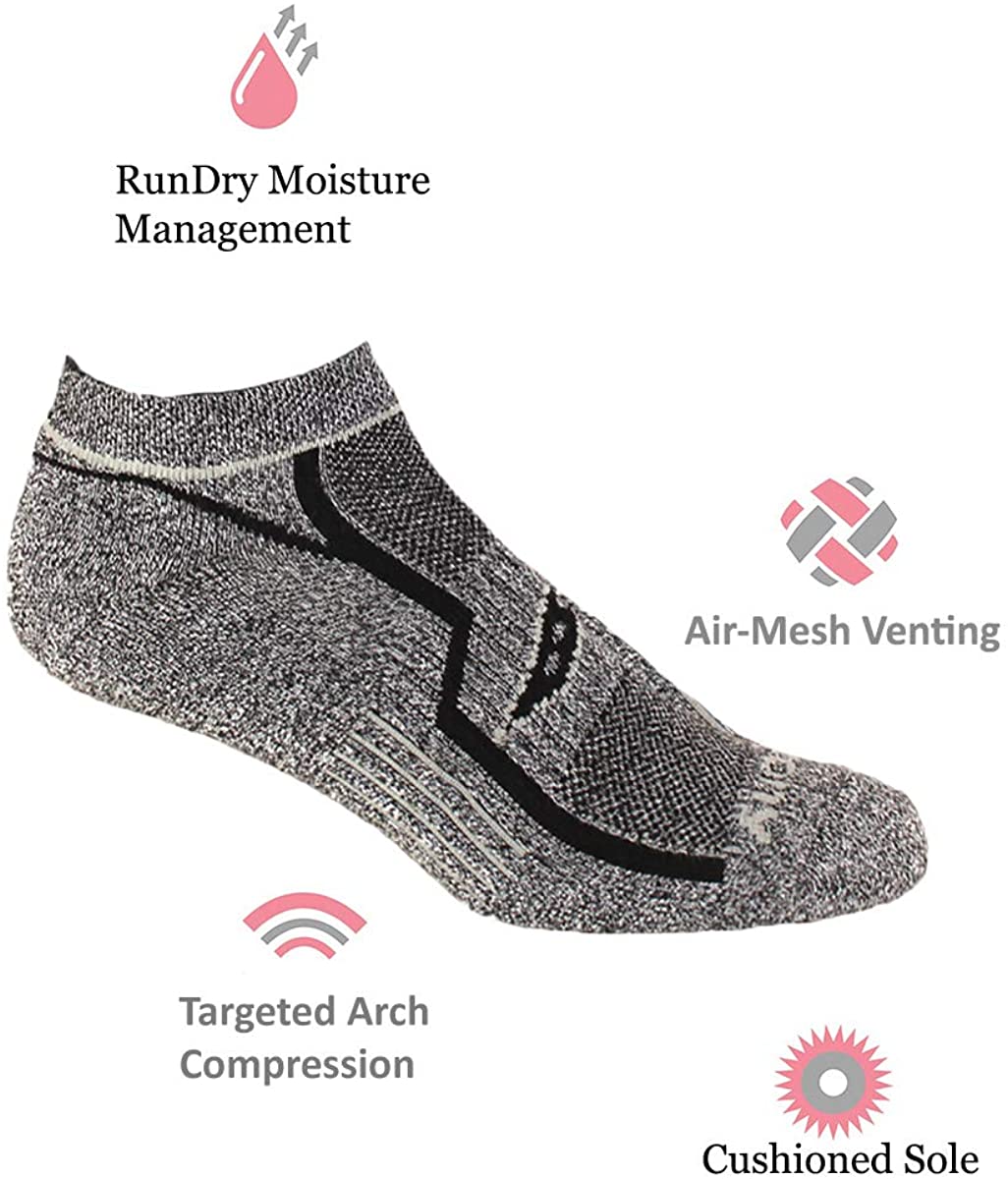 Saucony men's performance no show socks is a perfect combination of comfort and support. Great for the toughest training sessions. Its arch support, air mesh venting, and moisture management features will ensure lasting comfort.