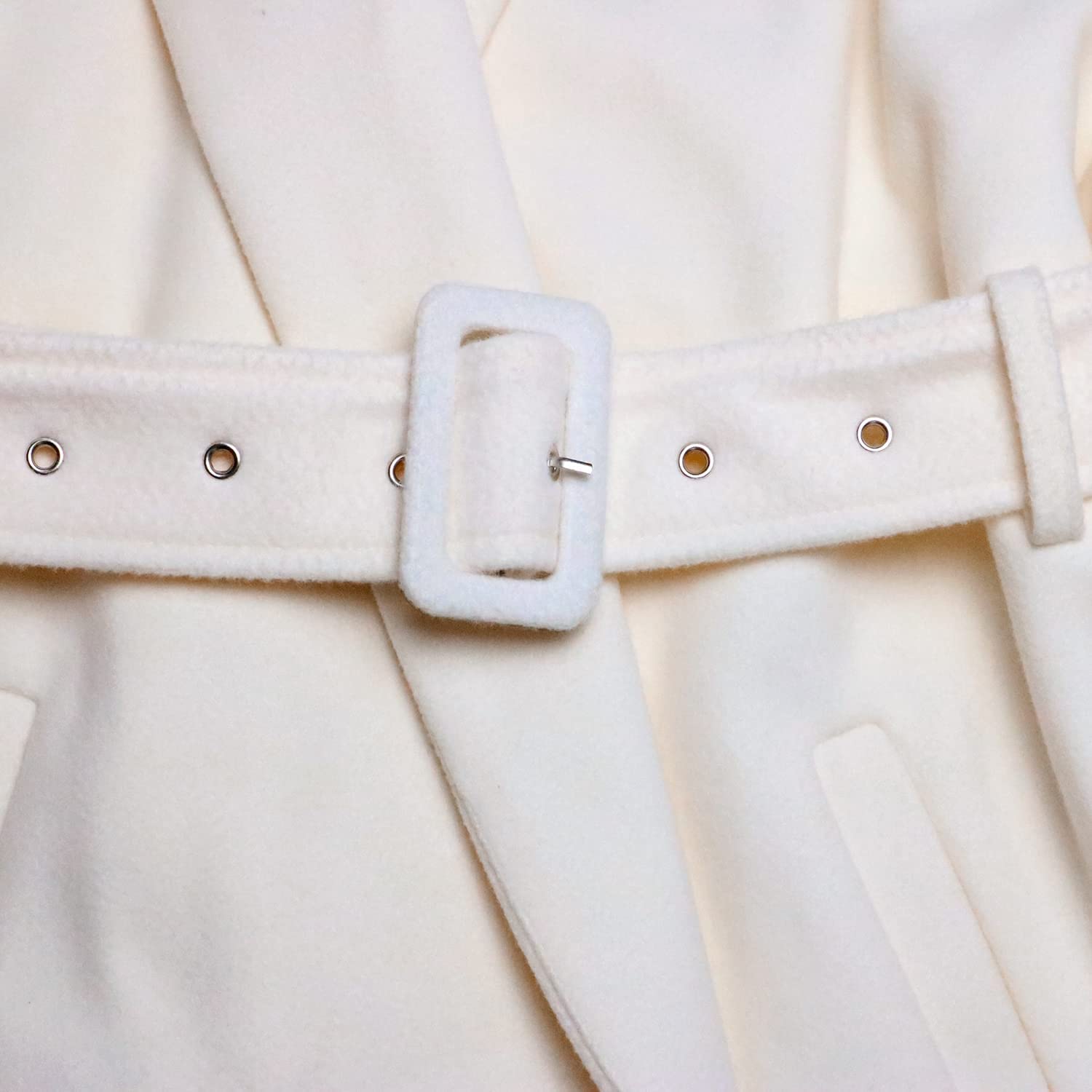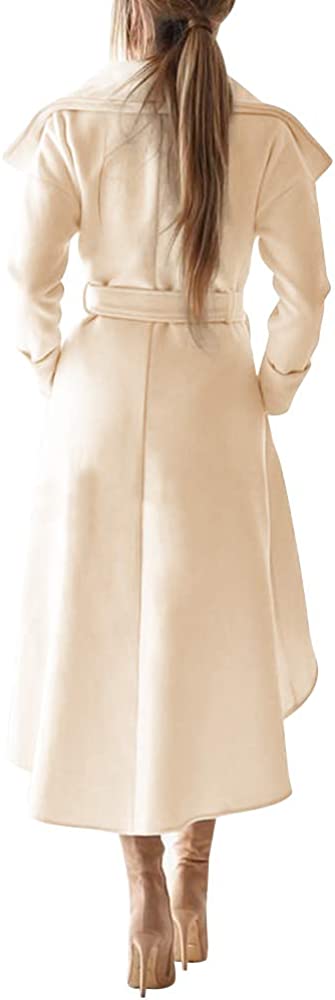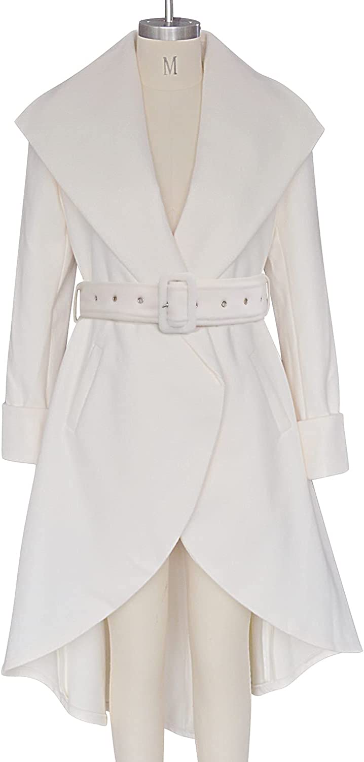 SAUKOLE Women's Winter Wool Trench Coat Wrap Large Collar High Low Jacket Outwear with Belt