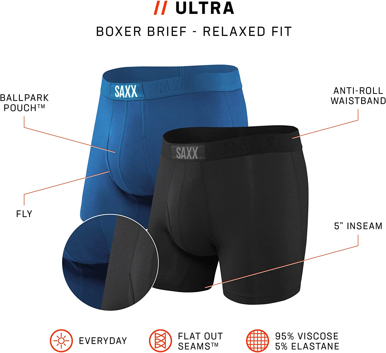 SAXX Men's Underwear - Ultra Super Soft Boxer Briefs with Fly and Built-in Pouch Support - Underwear for Men, Pack of 2