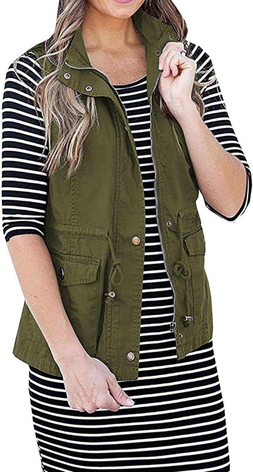 SENSERISE Womens Lightweight Sleeveless Military Anorak Drawstring Jacket Vest