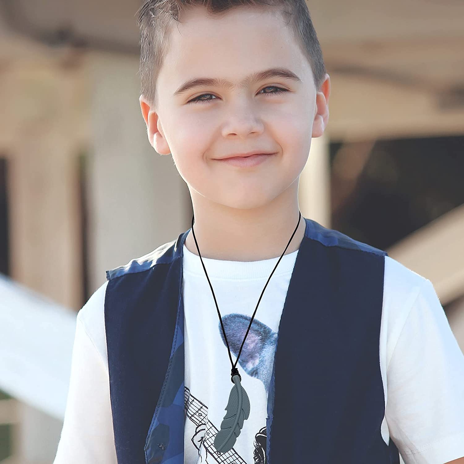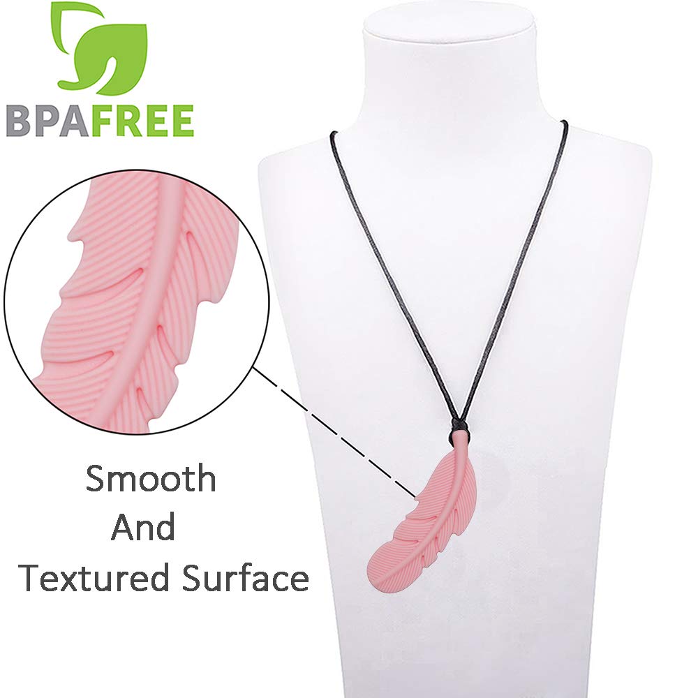 Sensory Chew Necklace for Kids, Boys and Girls, 4 Pack Silicone Feather Chewy Necklaces for Autism, ADHD, Chewing, Biting, Oral Motor Chewable Pendant for Mild Chewers