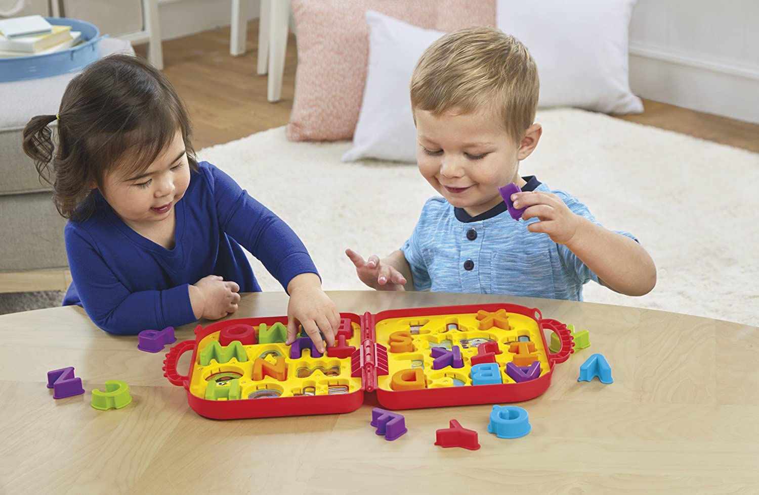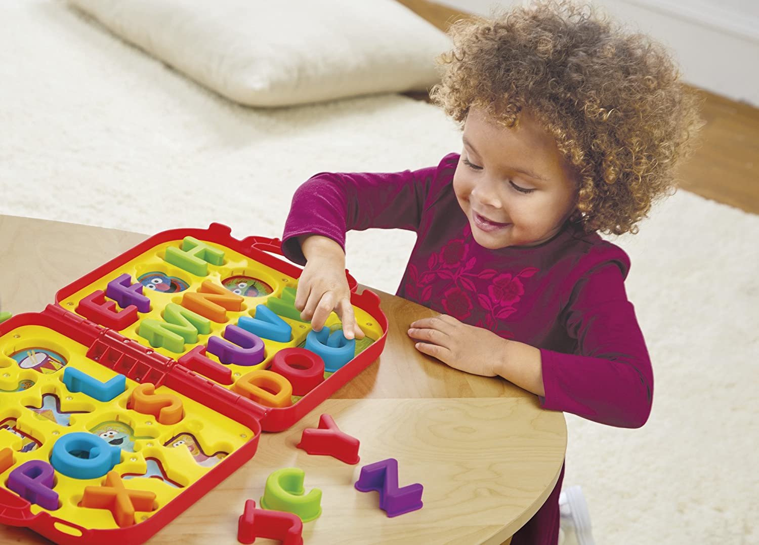Preschoolers will love exploring the alphabet with their favorite Sesame Street characters in Elmo's On the Go Letters! Snap each letter into place, or mix them up to spell out simple words in the bottom window. Underneath each letter is an image of a word that starts with that letter. When play is done, fold up the Elmo carrying case, and take the alphabet on the go! Sesame Street and associated characters, trademarks and design elements are owned and licensed by Sesame Workshop. Hasbro and all related terms are trademarks of Hasbro.