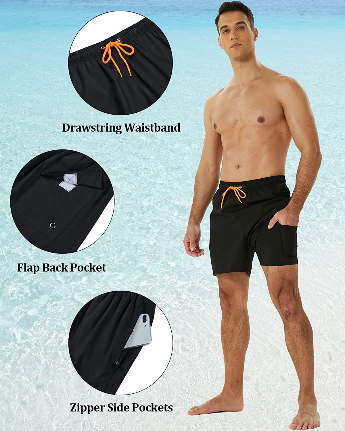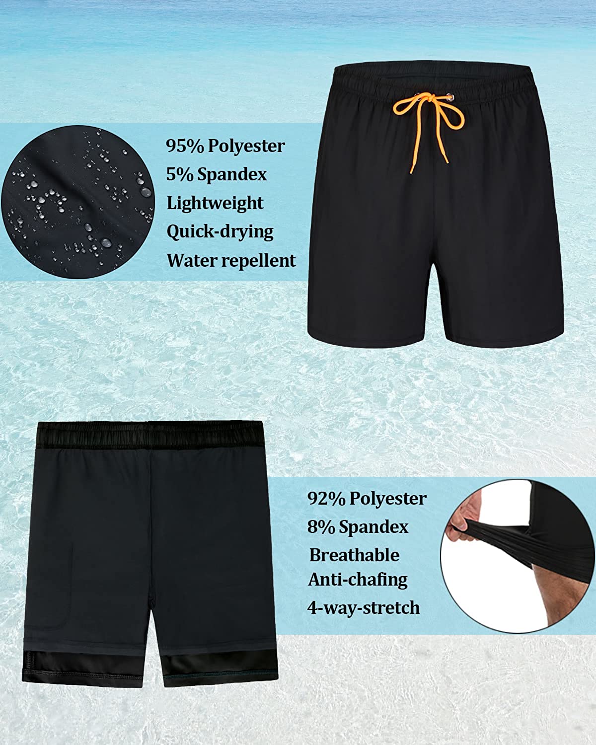SILKWORLD Mens Swimming Trunks with Compression Liner 2 in 1 Quick-Dry Swim Shorts with Zipper Pockets