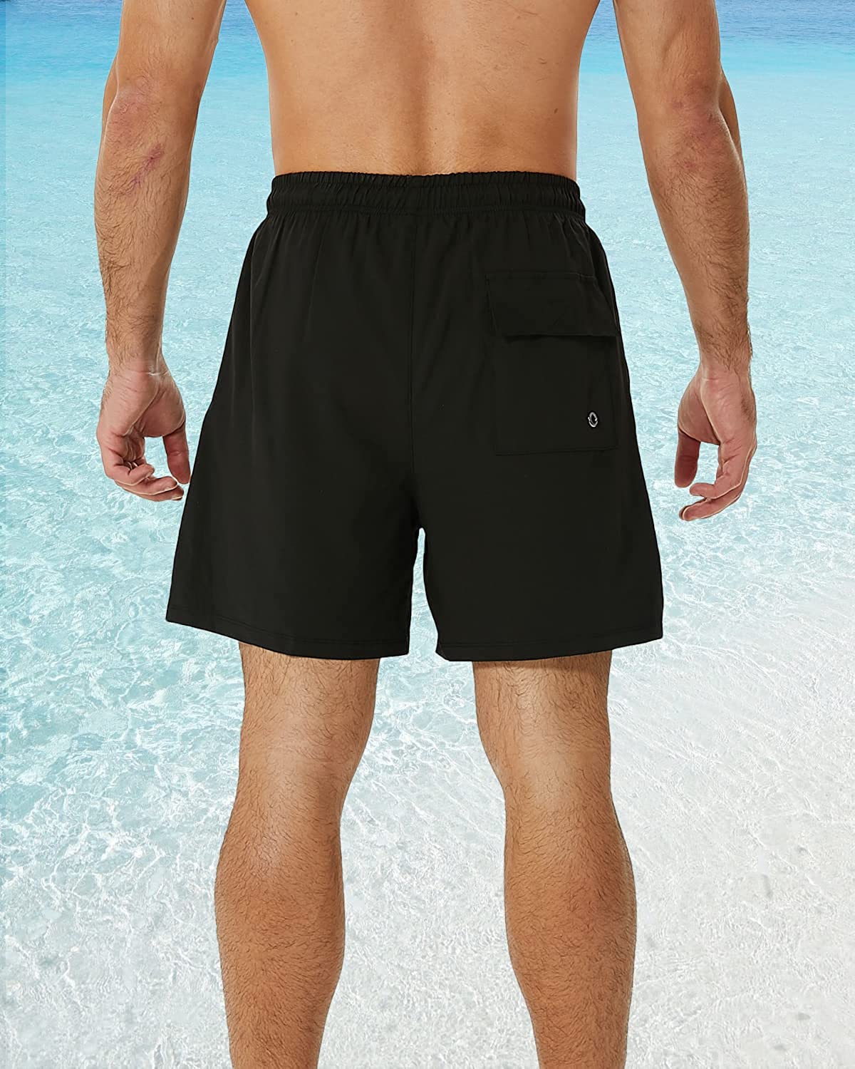 SILKWORLD Mens Swimming Trunks with Compression Liner 2 in 1 Quick-Dry Swim Shorts with Zipper Pockets