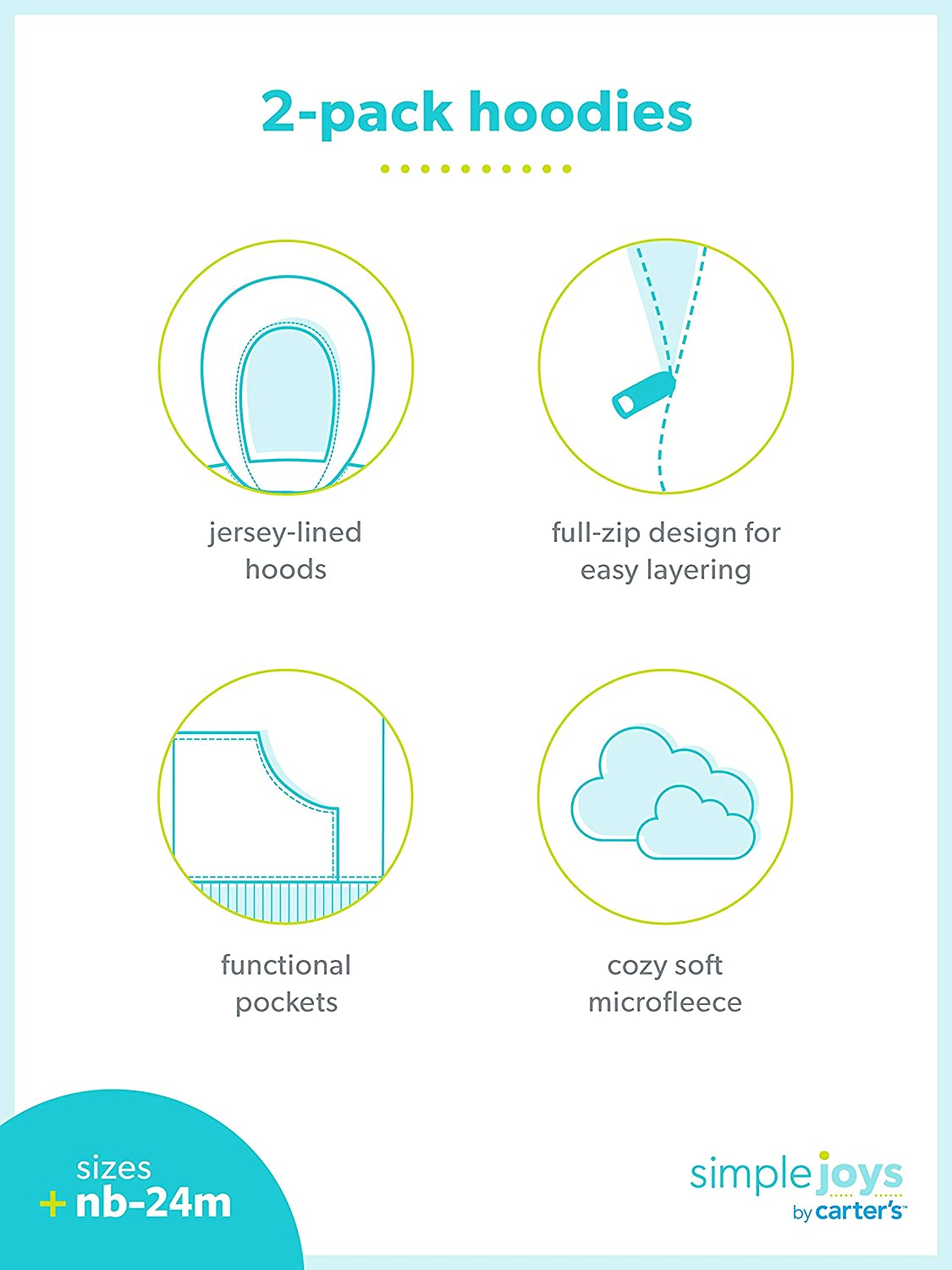 Simple Joys by Carter's Toddlers and Baby Girls' Fleece Full-Zip Hoodies, Pack of 2