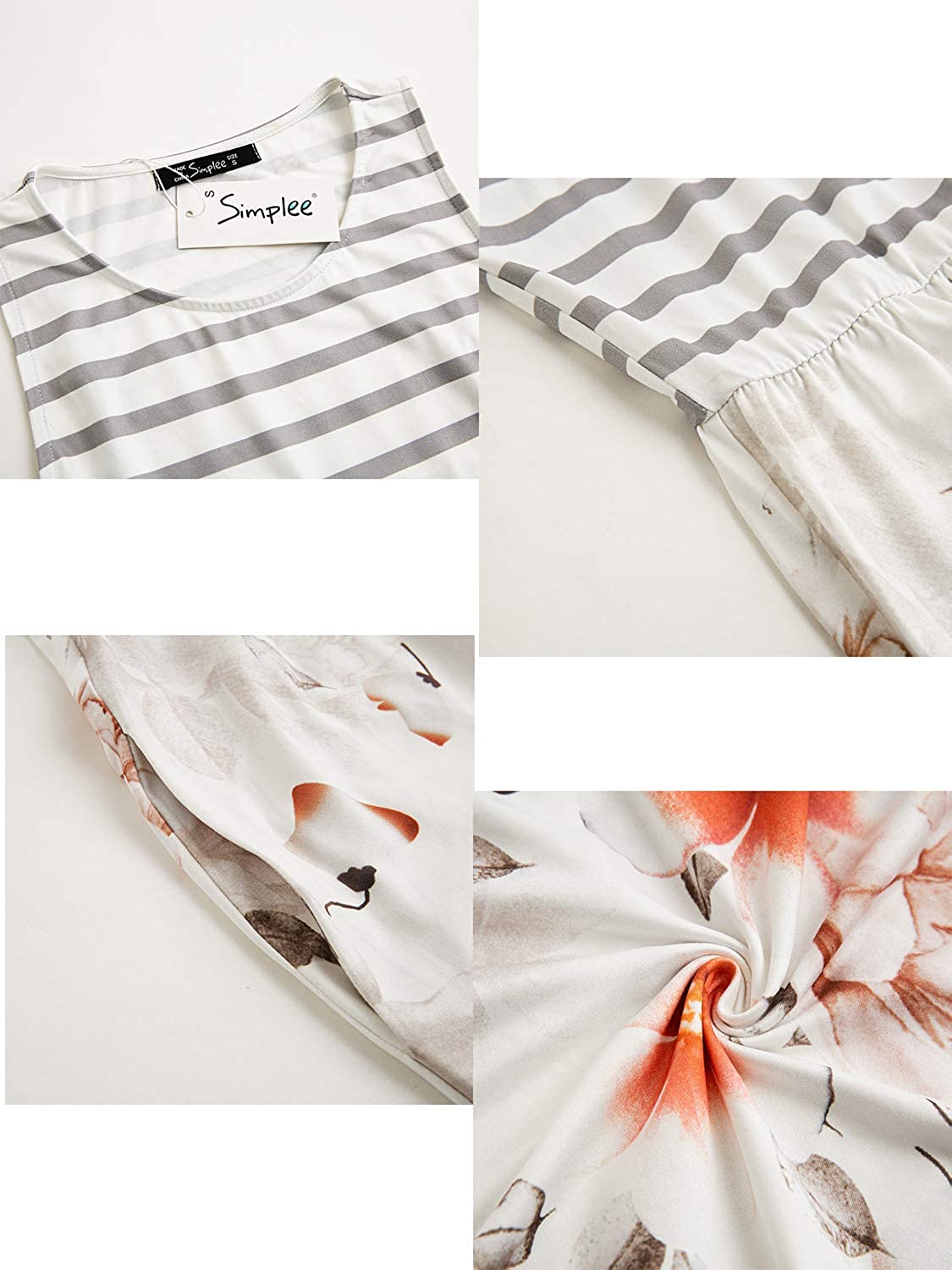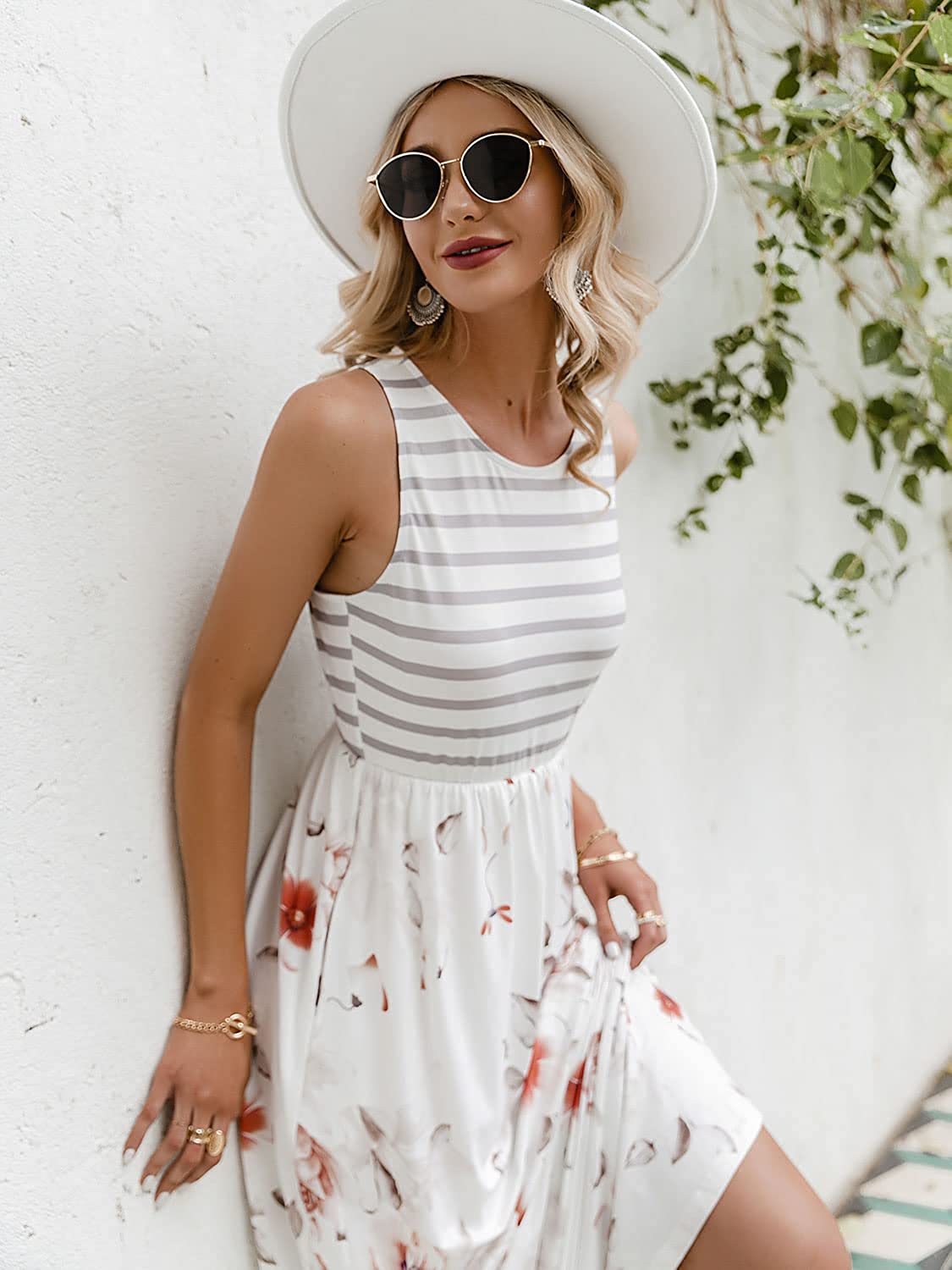Simplee Women's Sleeveless Floral Printed Casual Maxi Dress Striped Summer Long Dress