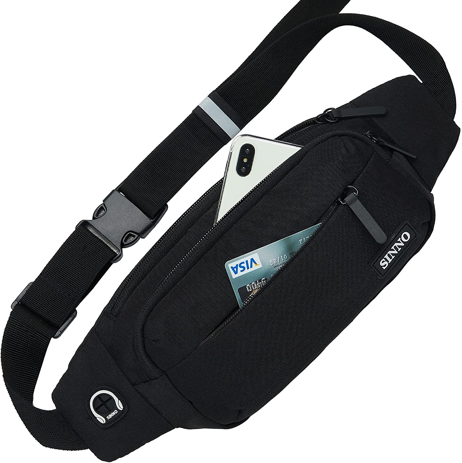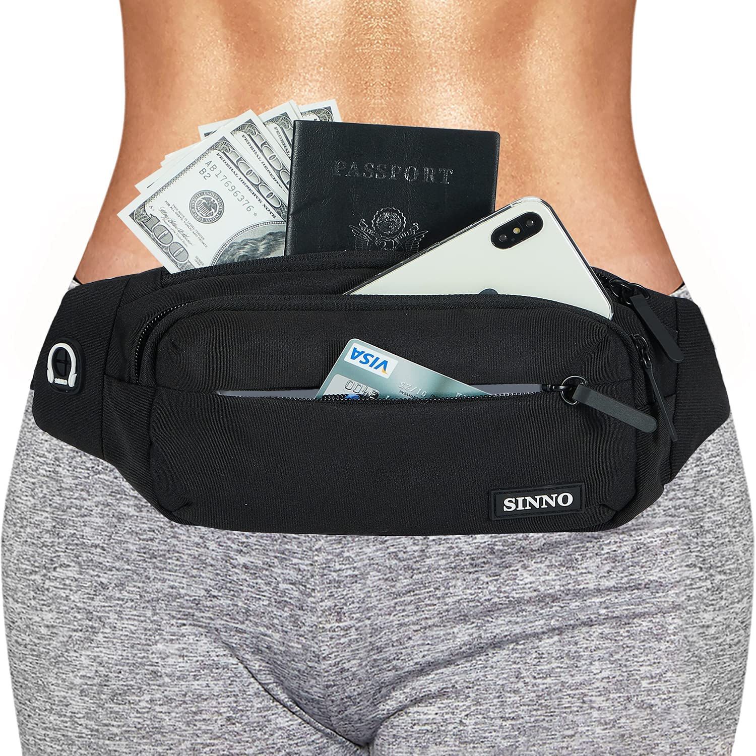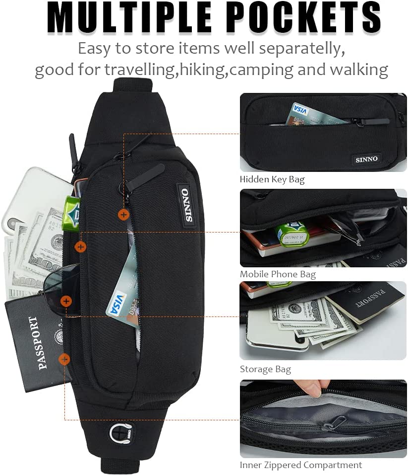 SINNO Large Fanny Pack With 4-Zipper Pockets for Running Hiking Travel Workout Dog Walking Outdoors Sport Fishing Waist Pack Bag