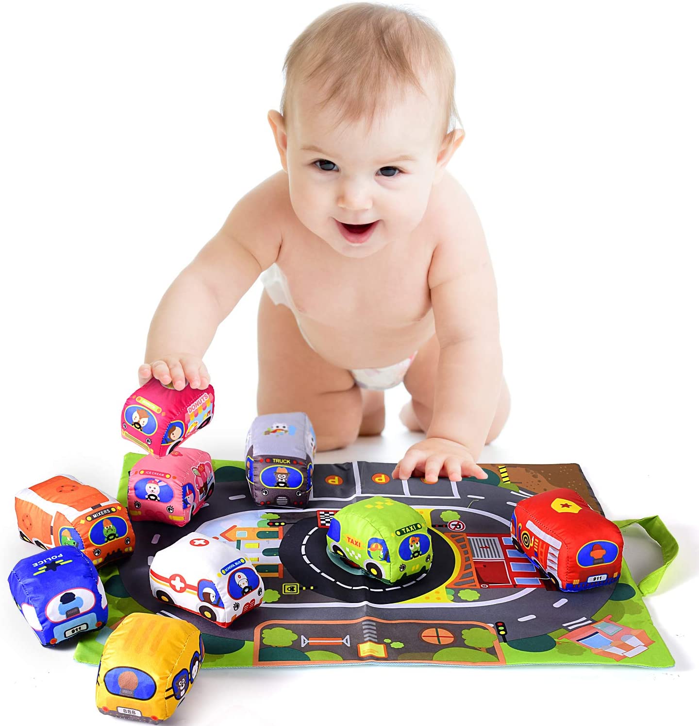 Soft Car Toy Set with Play Mat for 1 Year Old Baby,Toddlers,Boys and Girls ( 9 Vehicle and a Play mat/Storage Bag) | Baby Toys 12-18 Months| Toys for 1 Year Old boy