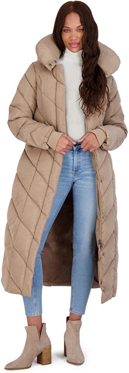 Steve Madden Women's Long Chevron Maxi Puffer Coat