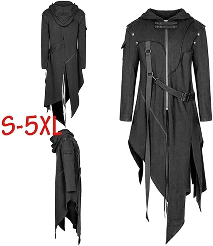 Stoota SINHE Men's Vintage Zipper Up Asymmetrical Hoodie Jacket, Irregular LonglineRetro Punk Style Party Outwear Coat