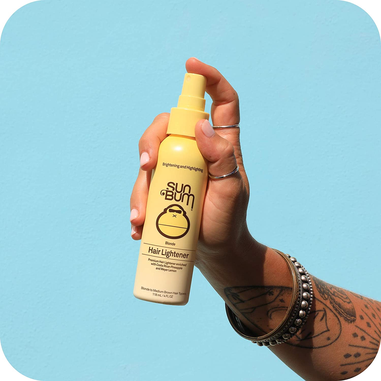 Sun Bum's Blonde Formula Hair Lightener is specifically formulated to brighten by amplifying the natural highlighting effects of the sun. Infused with Costa Rican pineapples and Hawaiian Lehua honey, our special UV-activated blend creates natural subtle tones and beautiful highlights. We couldn't be more stoked to share one of our best secrets with you. If you want cooler blonde tones, use our Blonde Tone Enhancer a few times a week (or more) as your leave-in conditioner.