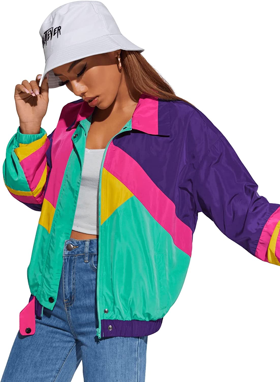SweatyRocks Women's Casual Lightweight Color Block Bomber Jacket