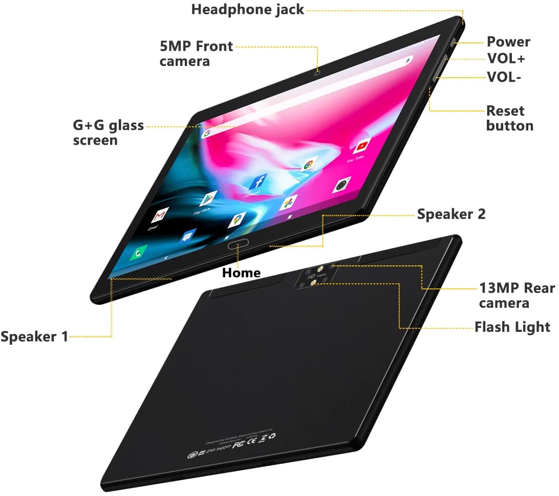 Tablet 10 inch Android 11 Octa-Core Processor Dual Sim Cellular 4G LTE Tablet PC 4GB RAM 64GB ROM 256GB Expandable, Google Certified Tablet with Keyboard 13 MP Camera Bluetooth WiFi GPS