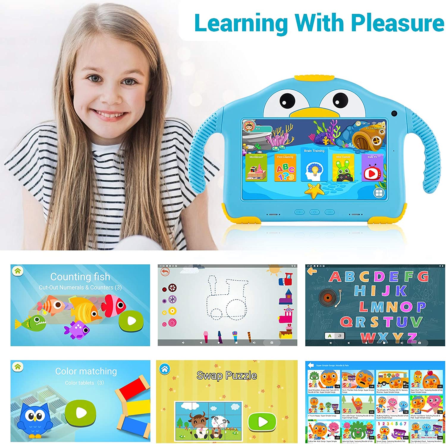 Tablet for Toddlers Tablet Android Kids Tablet with WiFi Dual Camera 1GB 32GB Storage 1024 x 600 Touch Screen Parental Control Mode Google Playstore YouTube Netflix for Boys Girls Android 10