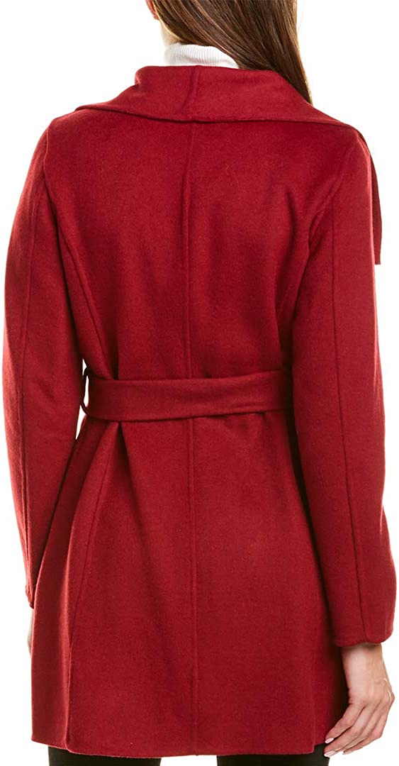 TAHARI Women's Deep Red Belted Wool Coat Jacket S