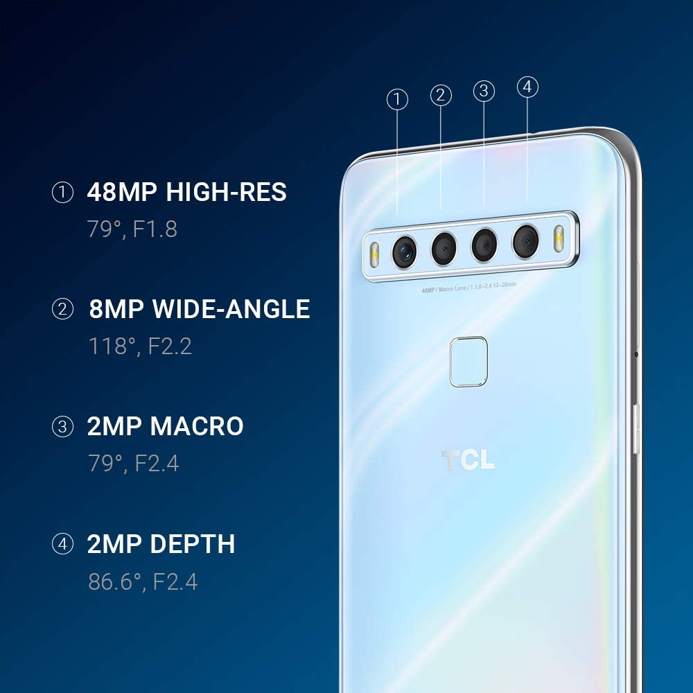 TCL 10L, Unlocked Android Smartphone, 256GB+6GB RAM Android Phone,6.53" FHD Cell Phone, 48MP Quad Rear Camera System, 4000mAh Verizon Phone Mobile Phone Large Storage, Arctic White