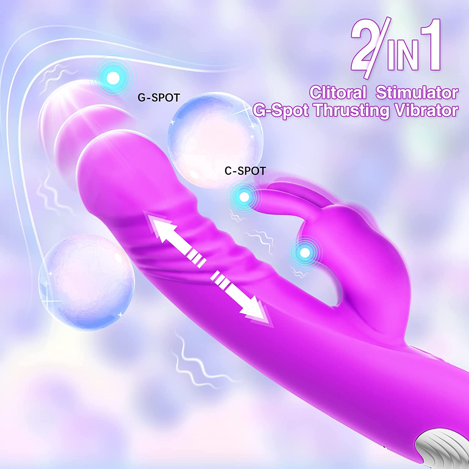 Thrusting Rabbit Vibrator, G Spot Clitoral Vibrator, Pulsing Dildo for Women with 3 Powerful Thrusting Speeds 11 Vibration Modes, Vagina Nipples Stimulator Rotating Vibrator, Adult Sex Toys for Women