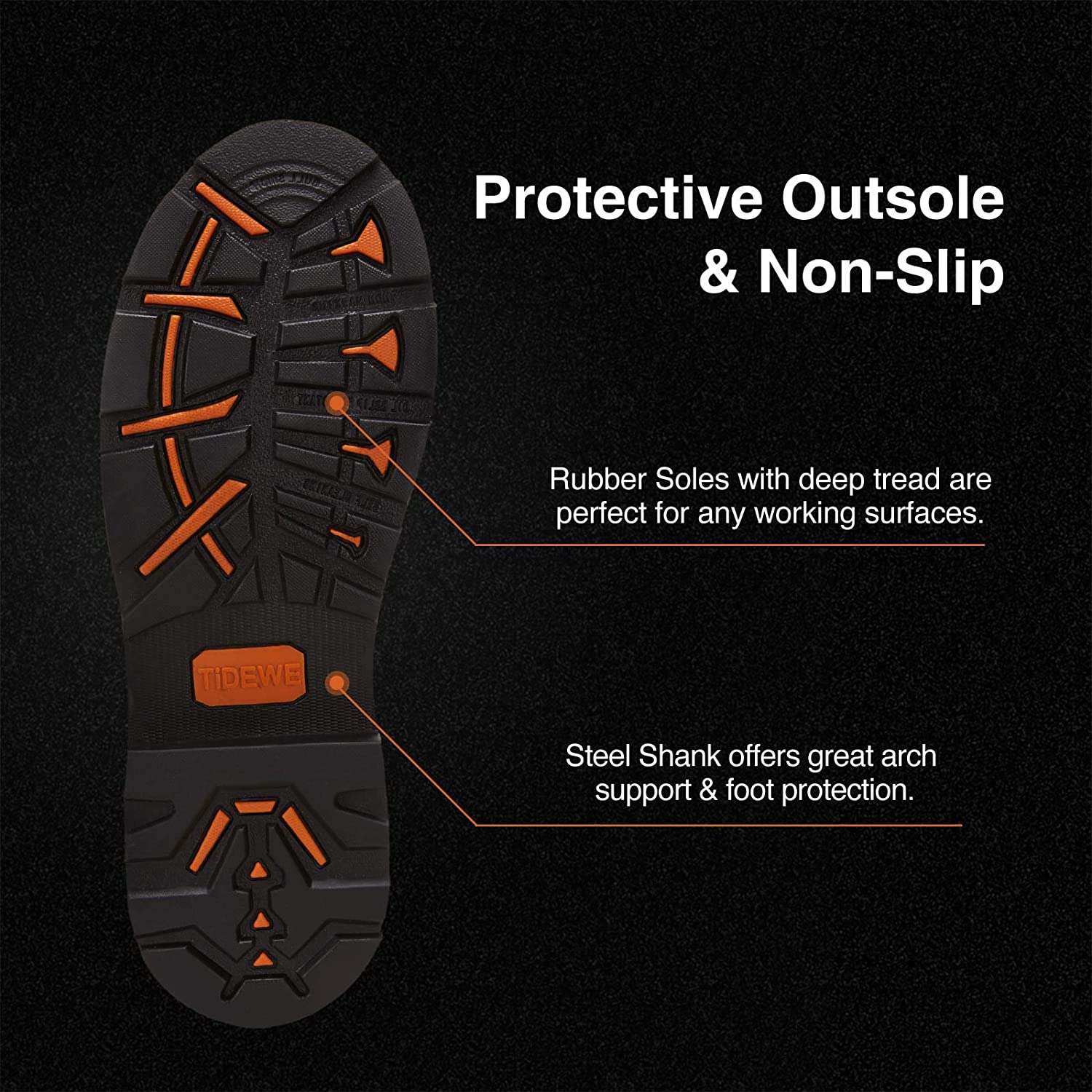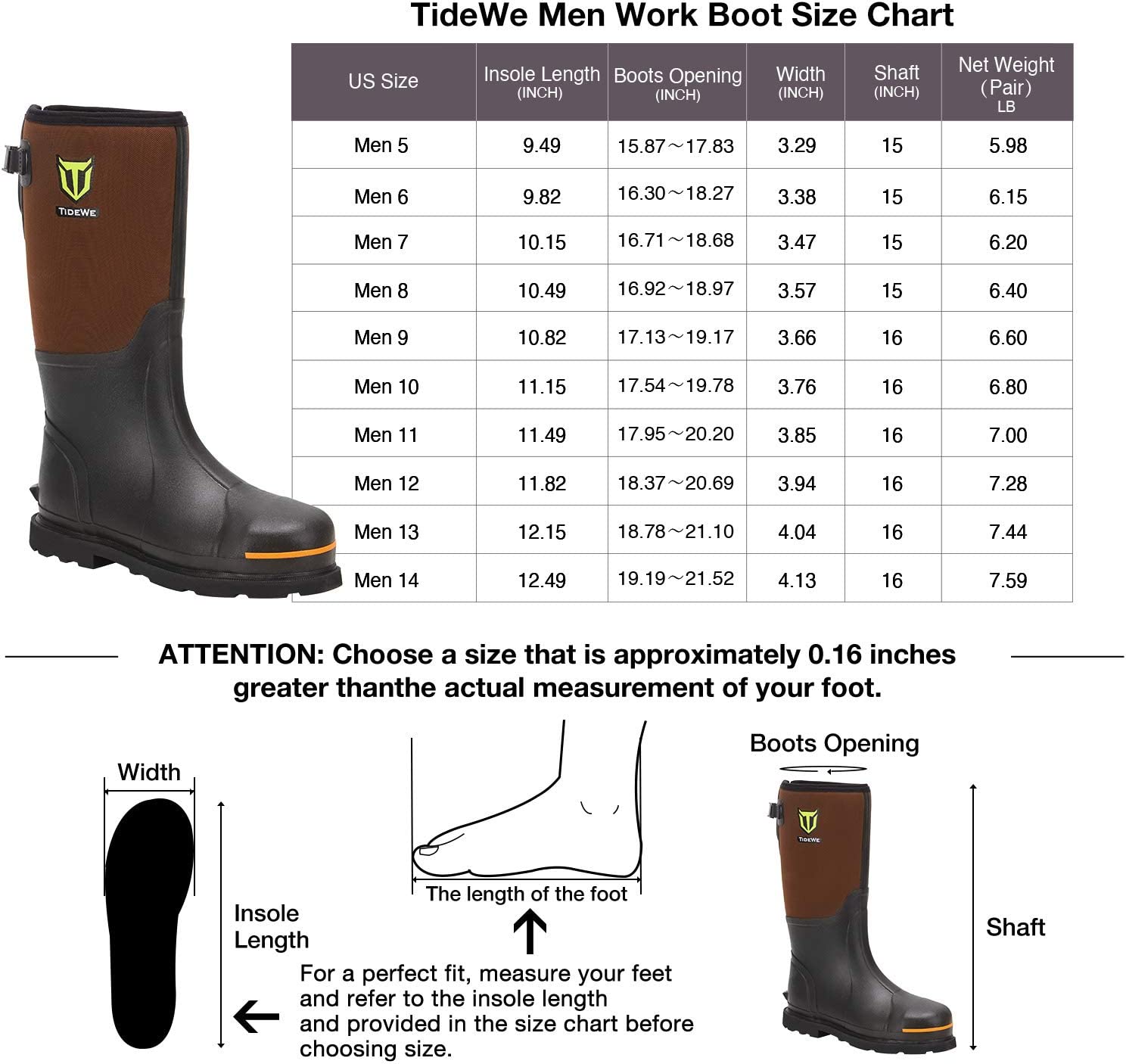 TIDEWE Rubber Work Boot for Men with Steel Toe & Shank, Waterproof Anti Slip Hunting Boot, 6mm Neoprene Hunting Boot, Durable Brown Rubber Boot for Manufacturing, Construction, Farming, Size 5-14