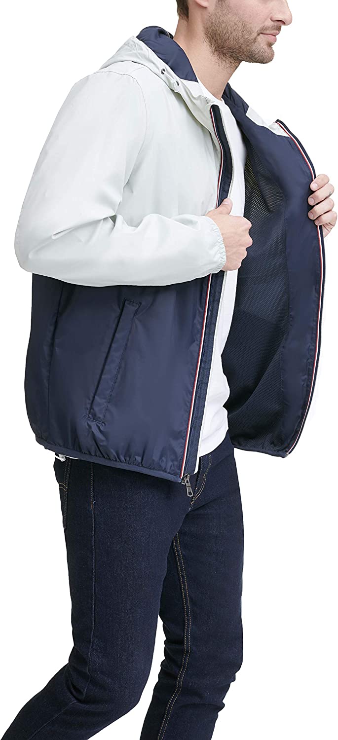 Tommy Hilfiger Men's Lightweight Active Water Resistant Hooded Rain Jacket