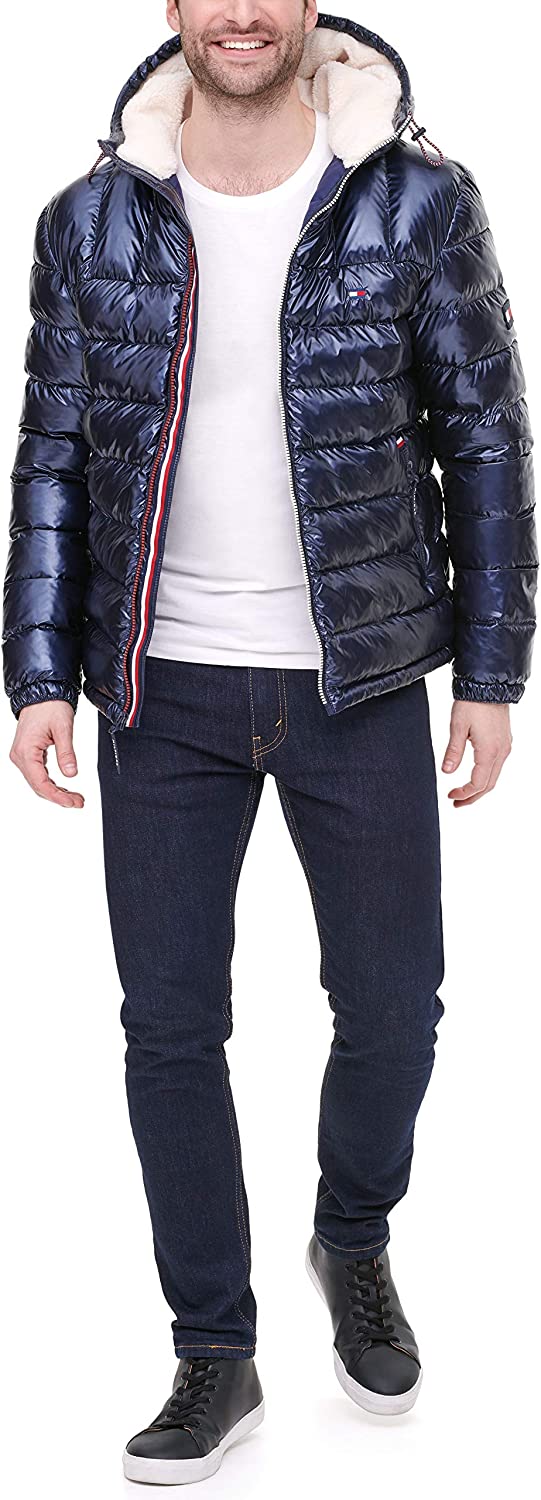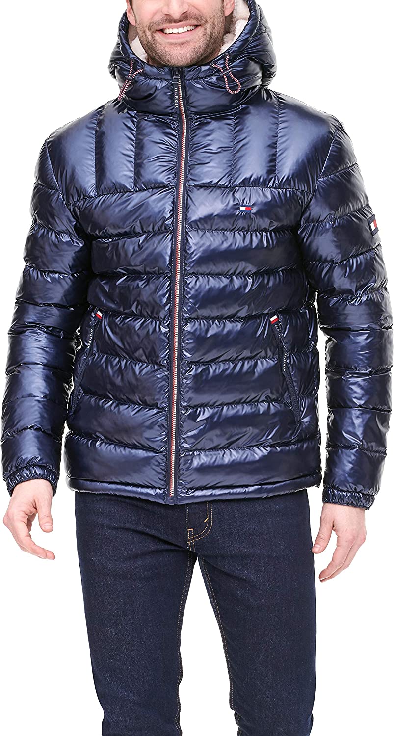 Tommy Hilfiger Men's Midweight Sherpa Lined Hooded Water Resistant Puffer Jacket