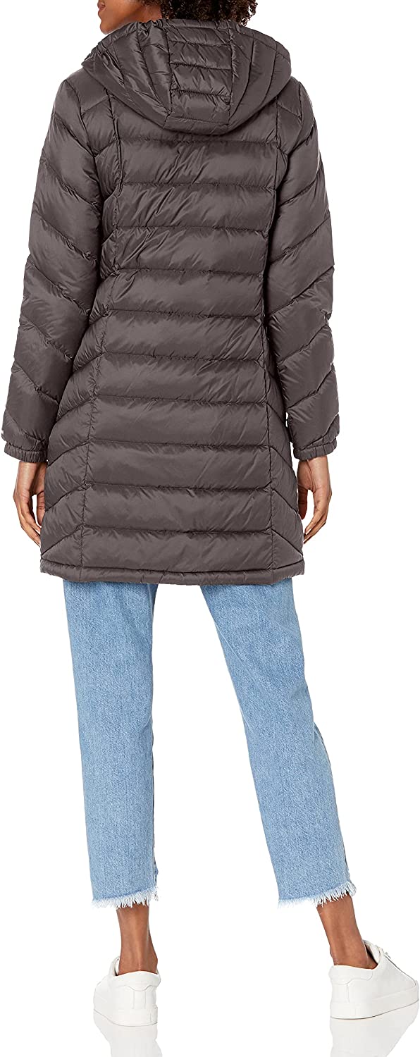 Tommy Hilfiger Women's Mid-Length Puffer Hooded Down Jacket with Drawstring Packing Bag