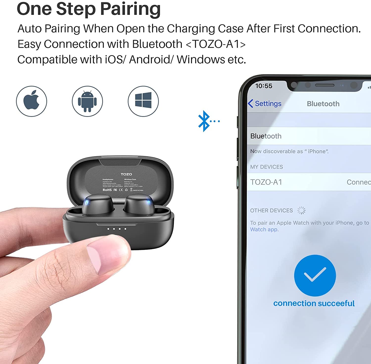 TOZO A1 Mini Wireless Earbuds Bluetooth 5.3 in Ear Light-Weight Headphones Built-in Microphone, IPX5 Waterproof, Immersive Premium Sound Long Distance Connection Headset with Charging Case, Black