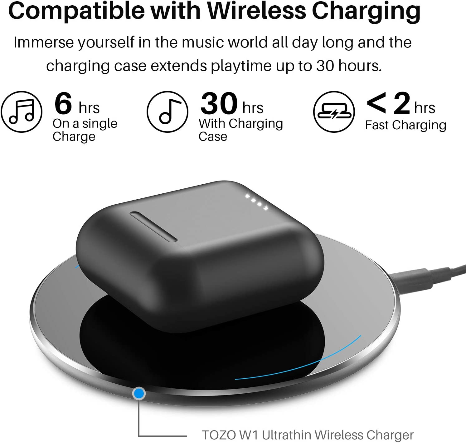 TOZO T6 True Wireless Earbuds Bluetooth Headphones Touch Control with Wireless Charging Case IPX8 Waterproof Stereo Earphones in-Ear Built-in Mic Headset Premium Deep Bass for Sport Black