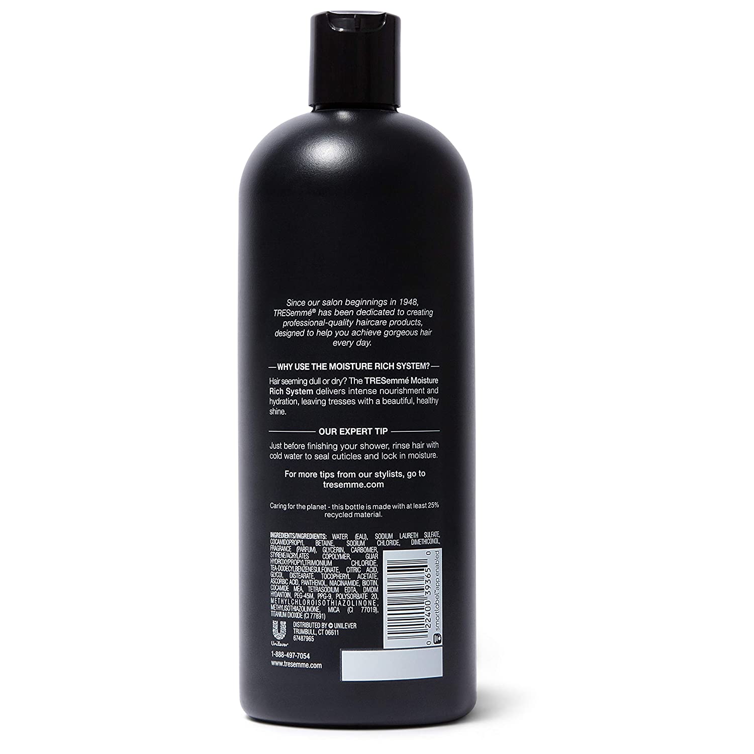 When it comes to replenishing moisture to dry locks, use TRESemmé Moisture Rich Shampoo for Dry Hair to restore natural vibrancy for a healthy look and eye-catching shine. TRESemmé wants you to look and feel your best, which is why the TRESemmé Moisture Rich System delivers optimized hydration that targets dryness and locks in moisture where your hair needs it most—every day. Enriched with vitamin E, this gentle shampoo is designed to deliver optimum hydration that targets dryness and seals in moisture. The lightweight formula means you can turn dry, damaged hair into soft, manageable strands with beautiful shine. It’s also safe for colored hair. How to use the Moisture Rich System: Step 1: Coat hair with a liberal amount of TRESemmé Moisture Rich Shampoo. Step 2: Gently massage the scalp and roots with fingertips to work into a lather. Step 3: Lightly squeeze the shampoo from roots to ends and rinse thoroughly. Step 4: Apply an adequate amount of Moisture Rich Conditioner from mid-shaft to ends. Step 5: Run a wide-tooth comb or fingers from roots to ends to detangle and fully coat hair. Leave for 2-3 minutes, then rinse thoroughly. Step 6: Finish with your favorite TRESemmé styling products as desired. Are you looking for a moisturizing shampoo for damaged hair? The clear choice is TRESemmé. Use TRESemmé Shampoo with TRESemmé's salon-quality hair styling products to perfect your look. These professional, salon-quality hair care products are deep conditioning hair products for dry hair without the salon price tag. Hair feeling dull or dry? TRESemmé Moisture Rich Detangling Spray is a conditioning, leave-in detangler that delivers intense nourishment and hydration, giving tresses a beautiful, healthy shine. Or give your hair the deep-rooted moisture it craves. TRESemmé Moisture Rich Deep Conditioning Mask works hard so you don’t have to, delivering intense nourishment that leaves hair looking healthy and happy in just one use. Ever since our origin in salons, TRESemmé has been driven by a simple truth: every woman deserves to look and feel their best, and that usually starts with a good hair day! TRESemmé is dedicated to creating hair care and styling products that are professional quality and promoting the values that defined our inspirational founder, Edna L. Emme — independence, self-reliance, and, most importantly, the confidence you need to step up and meet the next challenge.
