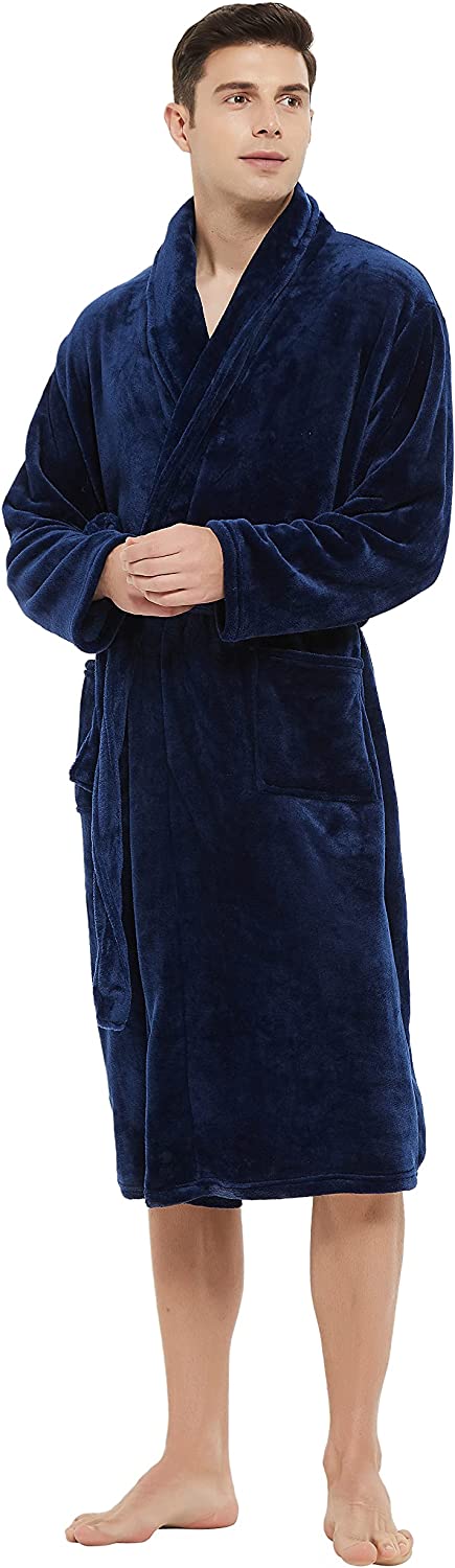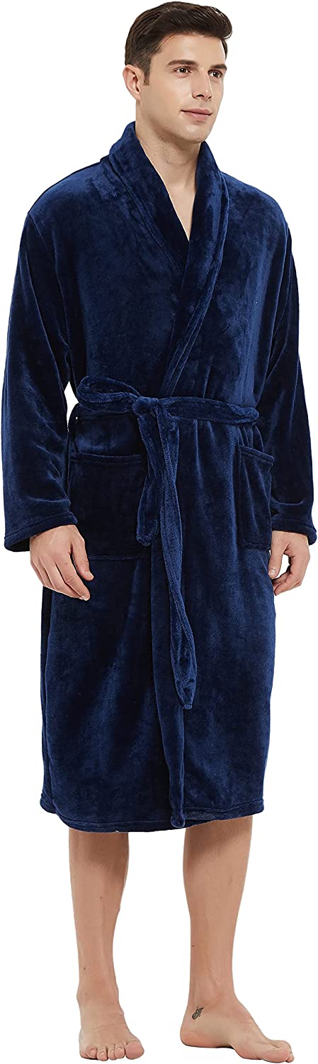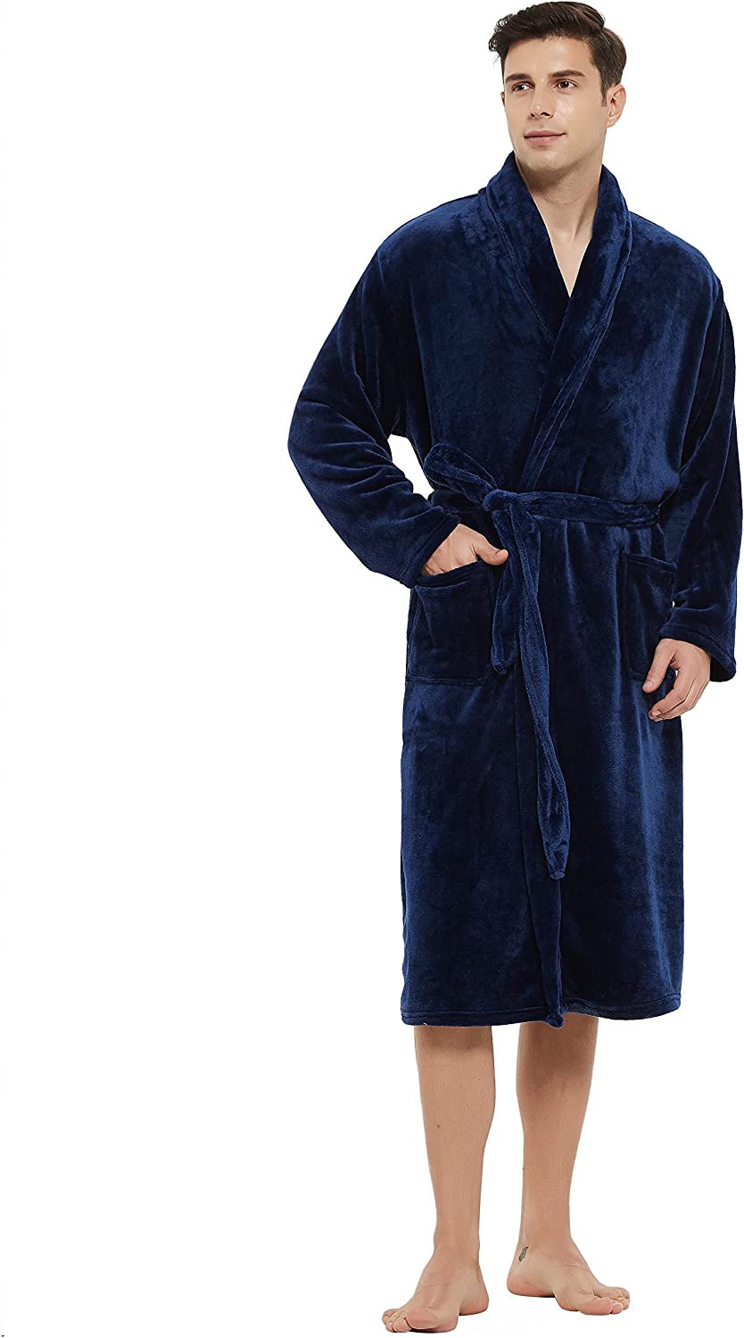 U2SKIIN Mens Fleece Robe Plush Collar Shawl Bathrobe