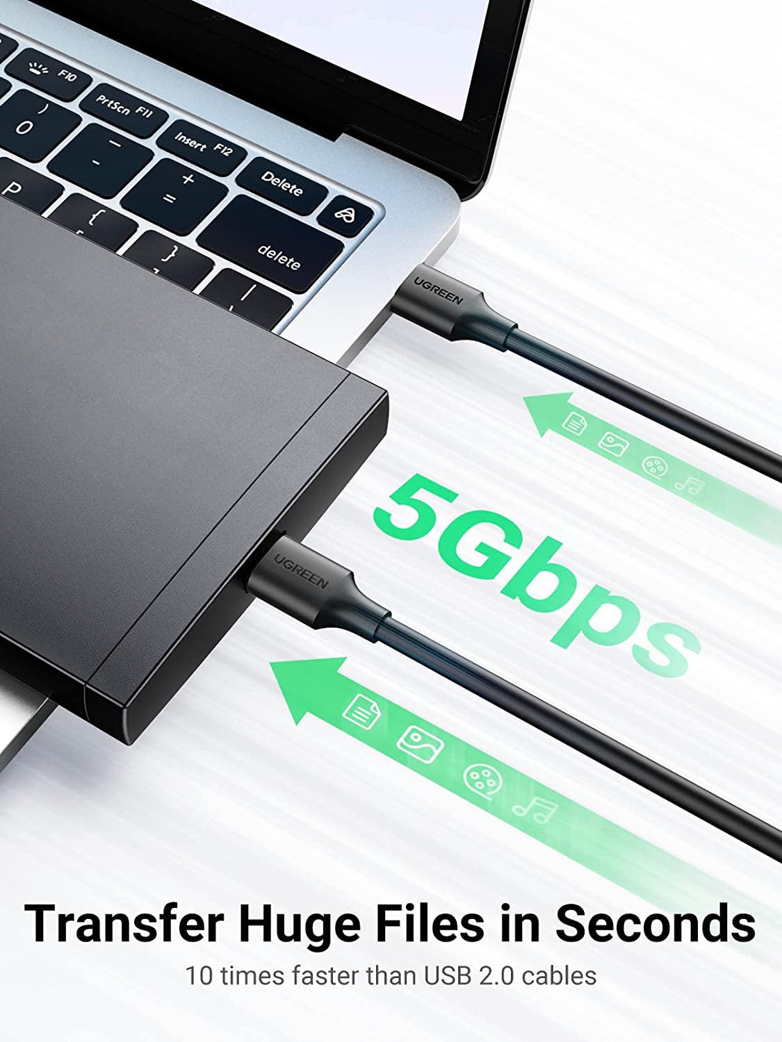 UGREEN USB to USB Cable, USB 3.0 Male to Male Type A to Type A Cable for Data Transfer Compatible with Hard Drive, Laptop, DVD Player, TV, USB 3.0 Hub, Monitor, Camera, Set Up Box and More 1.5FT