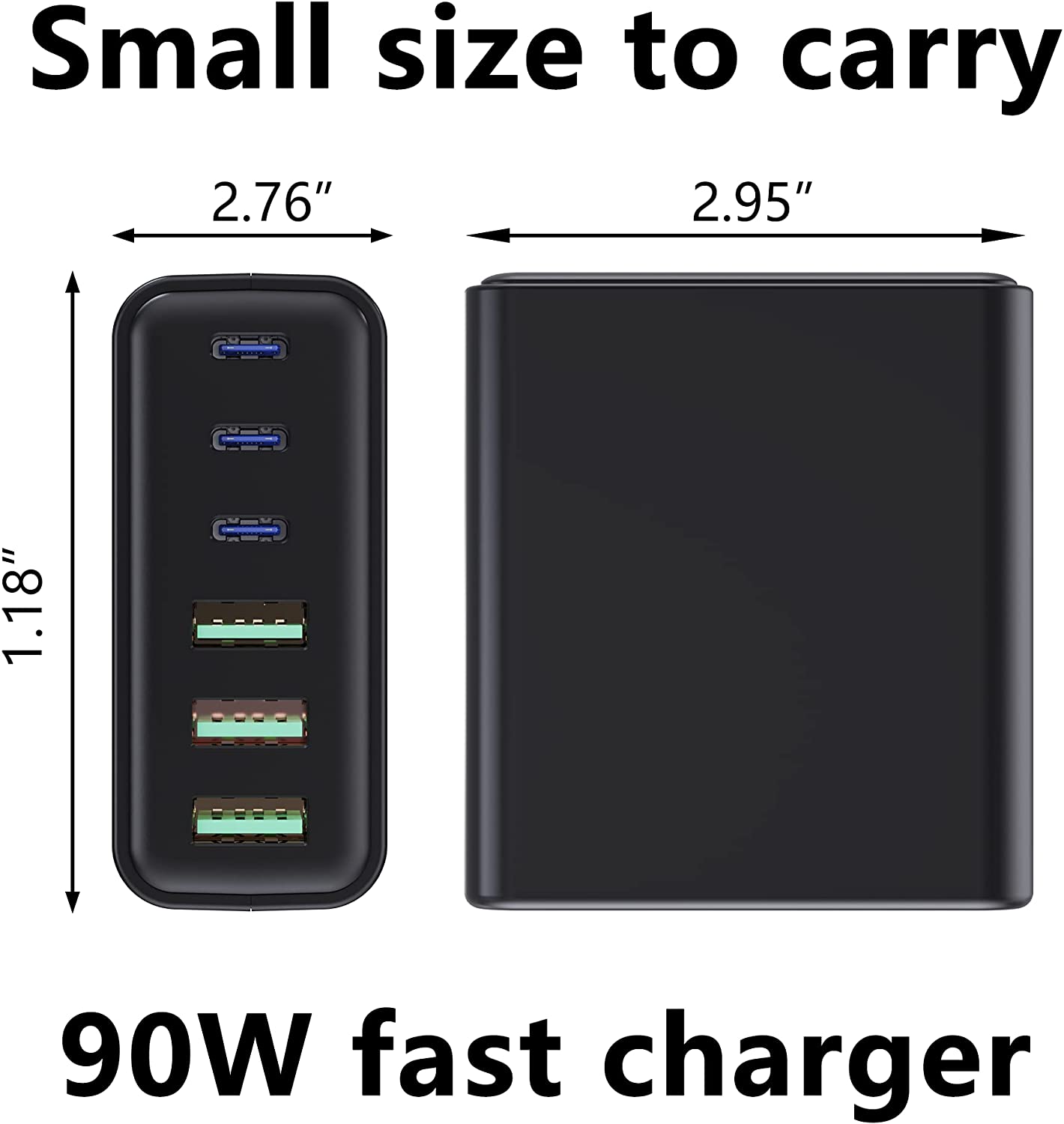 USB C Fast Charger, Sacrack 90W 6 Port USB C Charging Station, Portable Fast USB C Wall Charger PD Adapter 3 USB C and 3 QC USB A for All iPad, iPhone 13 12 11 Max Mini, Pixel Samsung Galaxy
