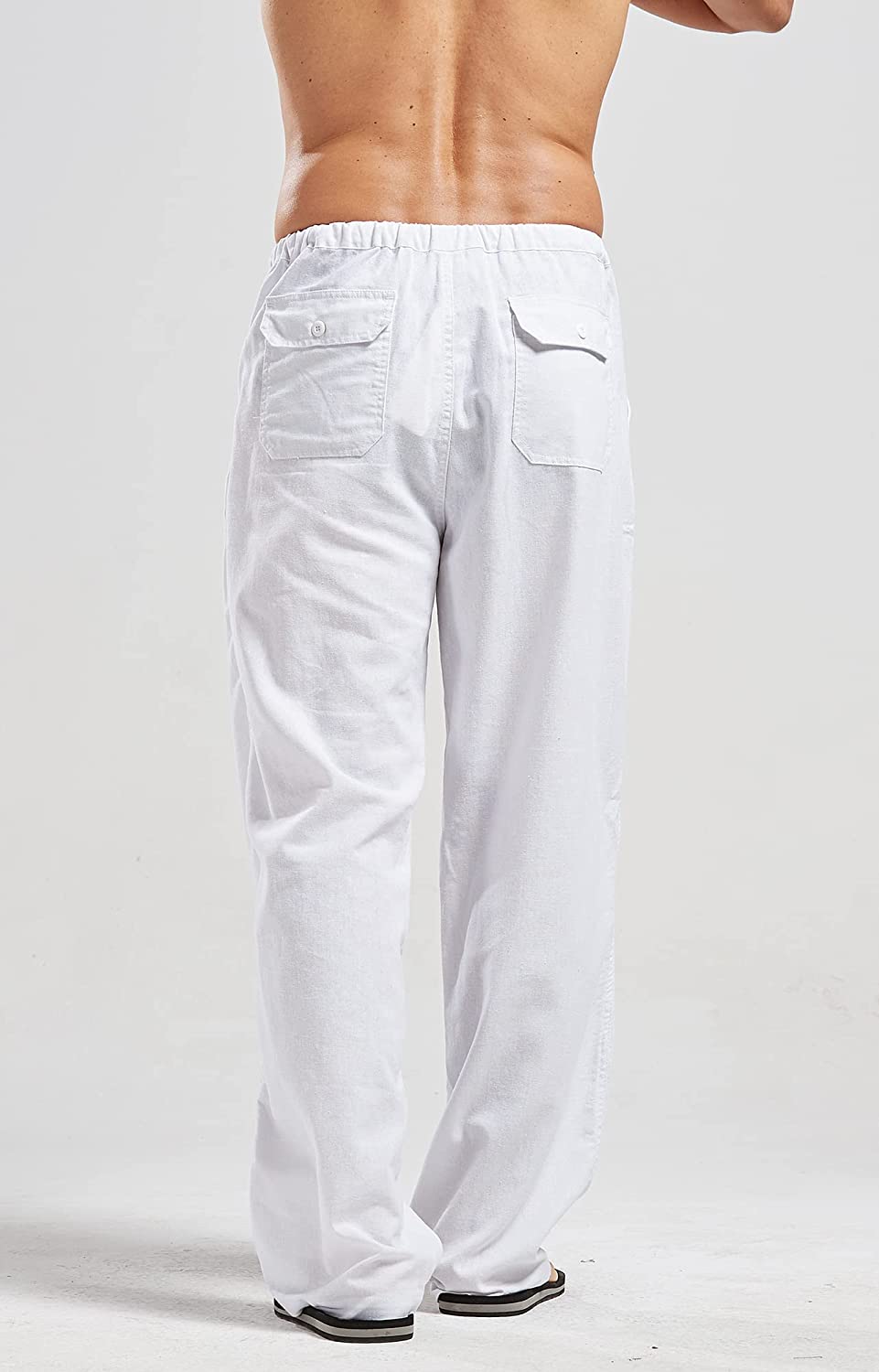 utcoco Qiuse Men's Casual Loose Fit Straight-Legs Stretchy Waist Beach Pants