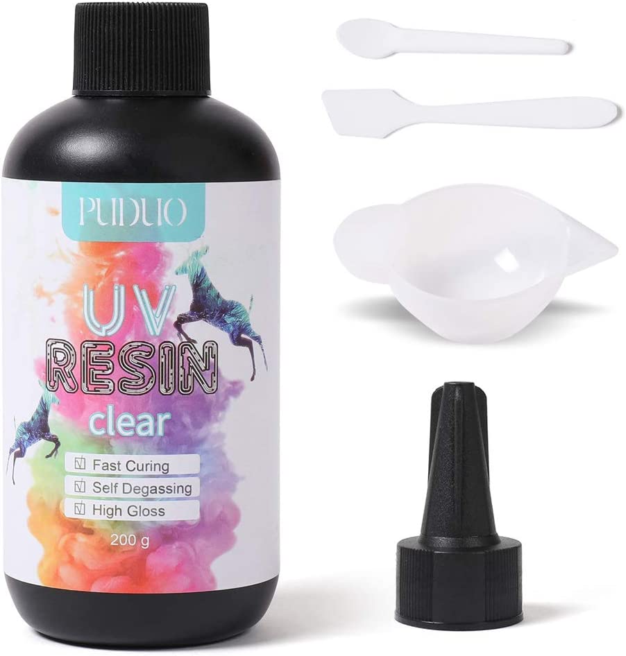 UV Resin Kit Clear Crystal for Jewelry Making 200g, Hard Type UV Epoxy Resin Glues Craft Kit for Molds with Starter Tool Kit by puduo