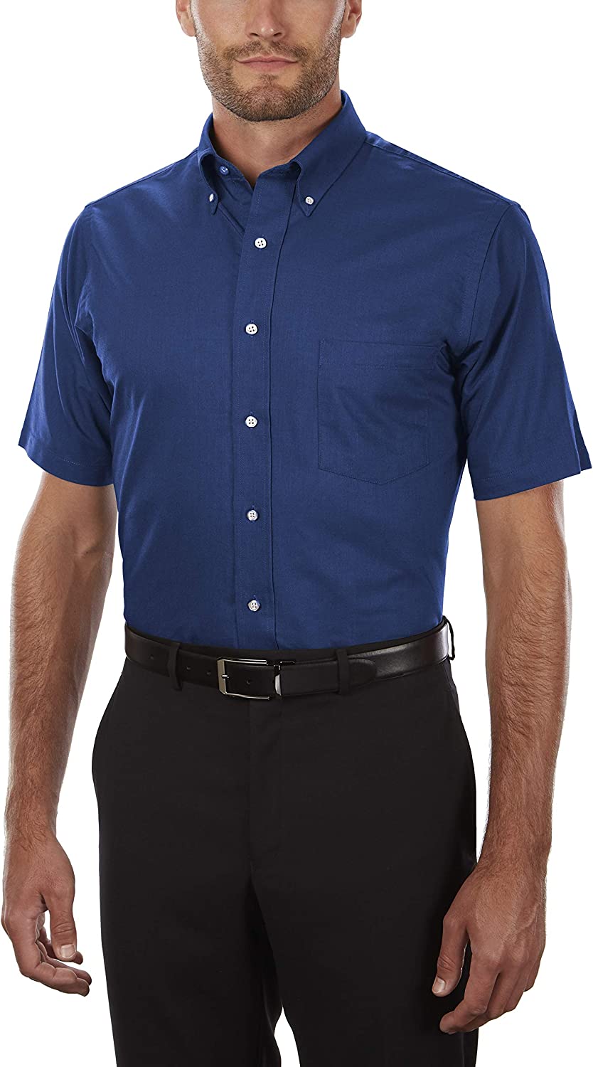 Van Heusen Men's Short Sleeve Dress Shirt Regular Fit Oxford Solid