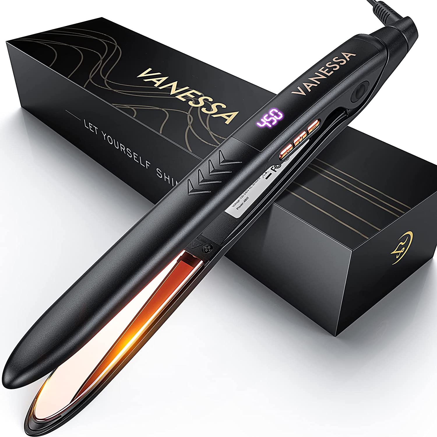 VANESSA PRO Flat Iron Hair Straightener, 100% Pure Titanium Flat Iron for One Pass to Achieve a Sleek Look, Curls Beautifully & Straightens Well - 1 inch
