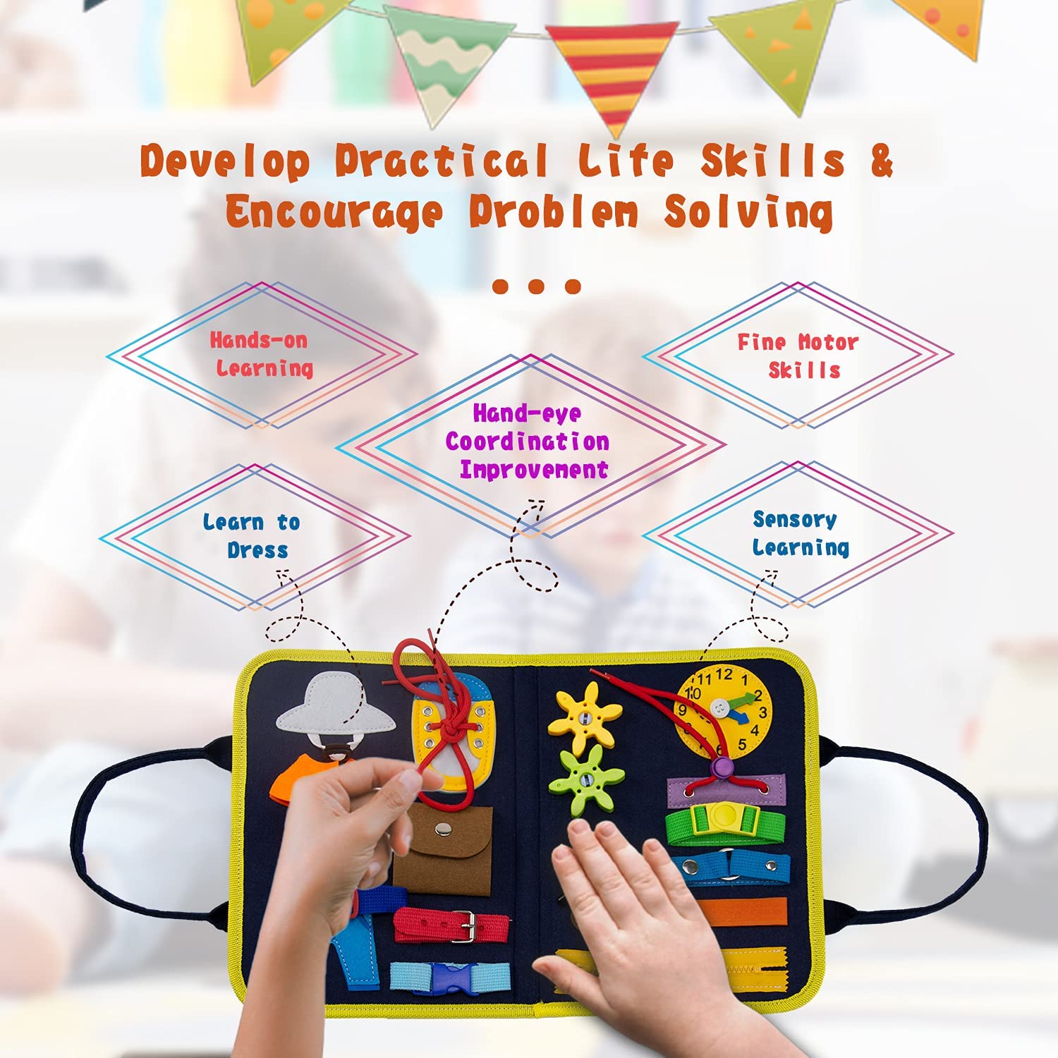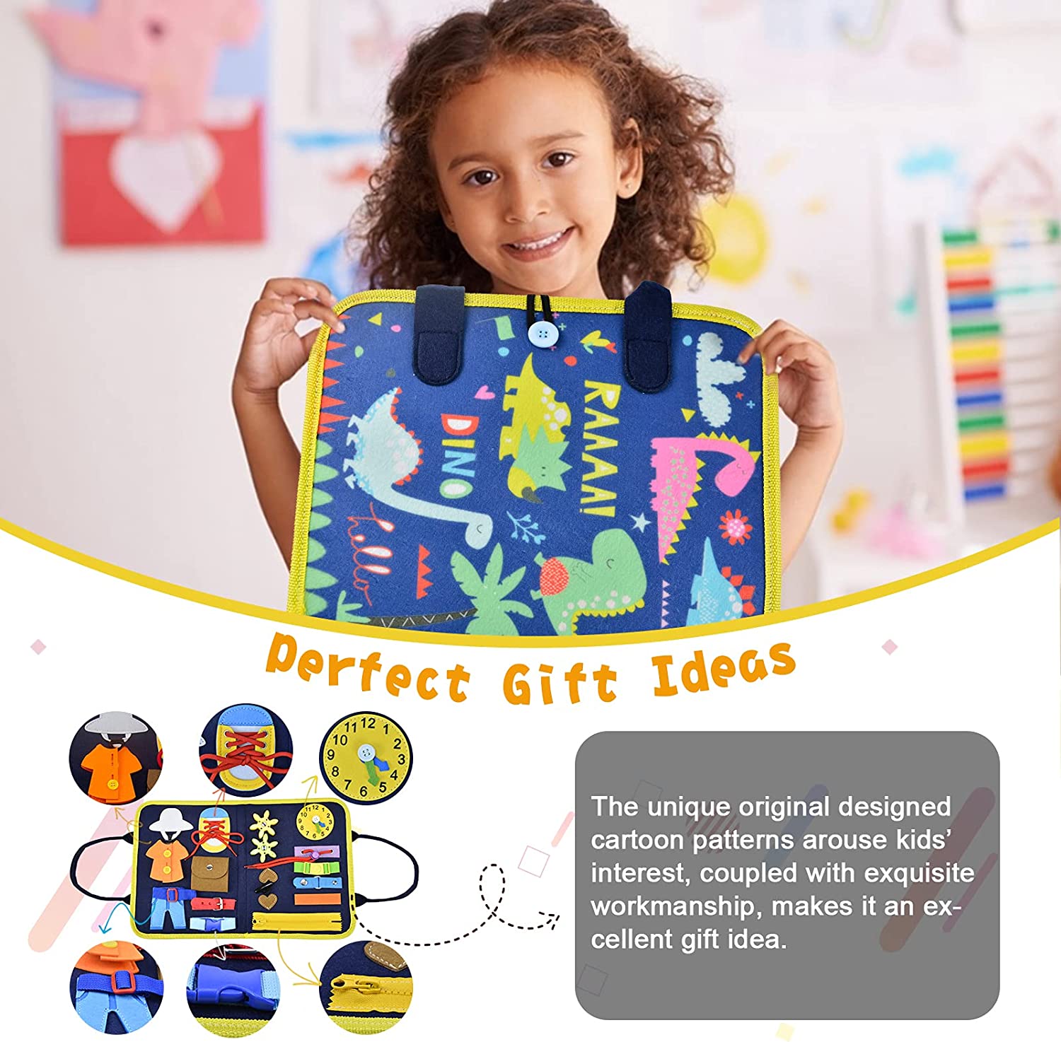 VARANO Busy Board, Montessori Toys Toddler Activity Sensory Board for Fine Motor Skills, Sensory Toys for Toddlers, Educational Travel Toys for Plane and Car, Gifts for 2-6 Year Old Boys & Girls