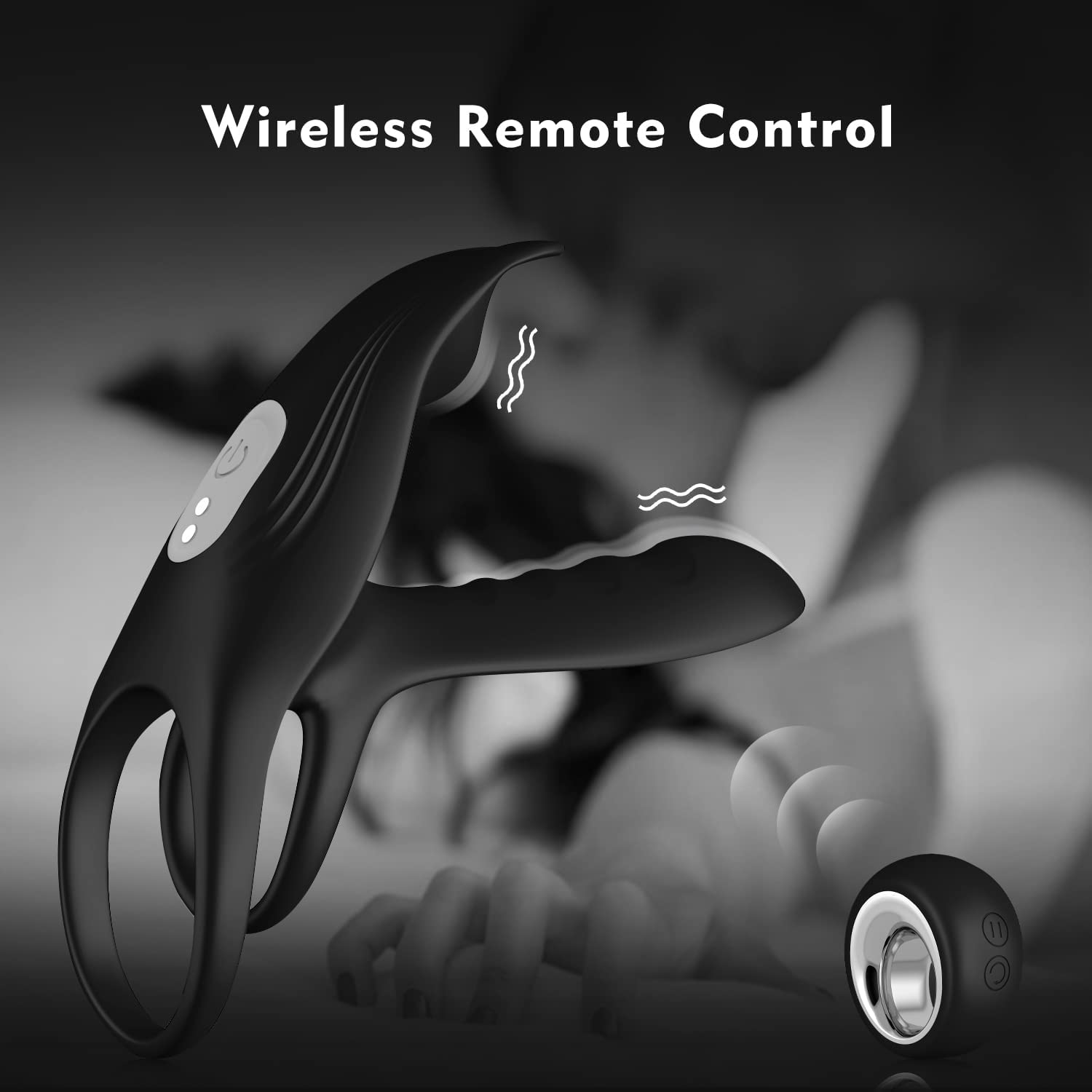 Vibrating Cock Ring, 3 in 1 Silicone Penis Ring with 10 Vibration Modes G-Spot & Clitoral Stimulator, Couple Vibrator Rechargeable Waterproof Adult Sex Toys with Remote Control for Men or Couples Play