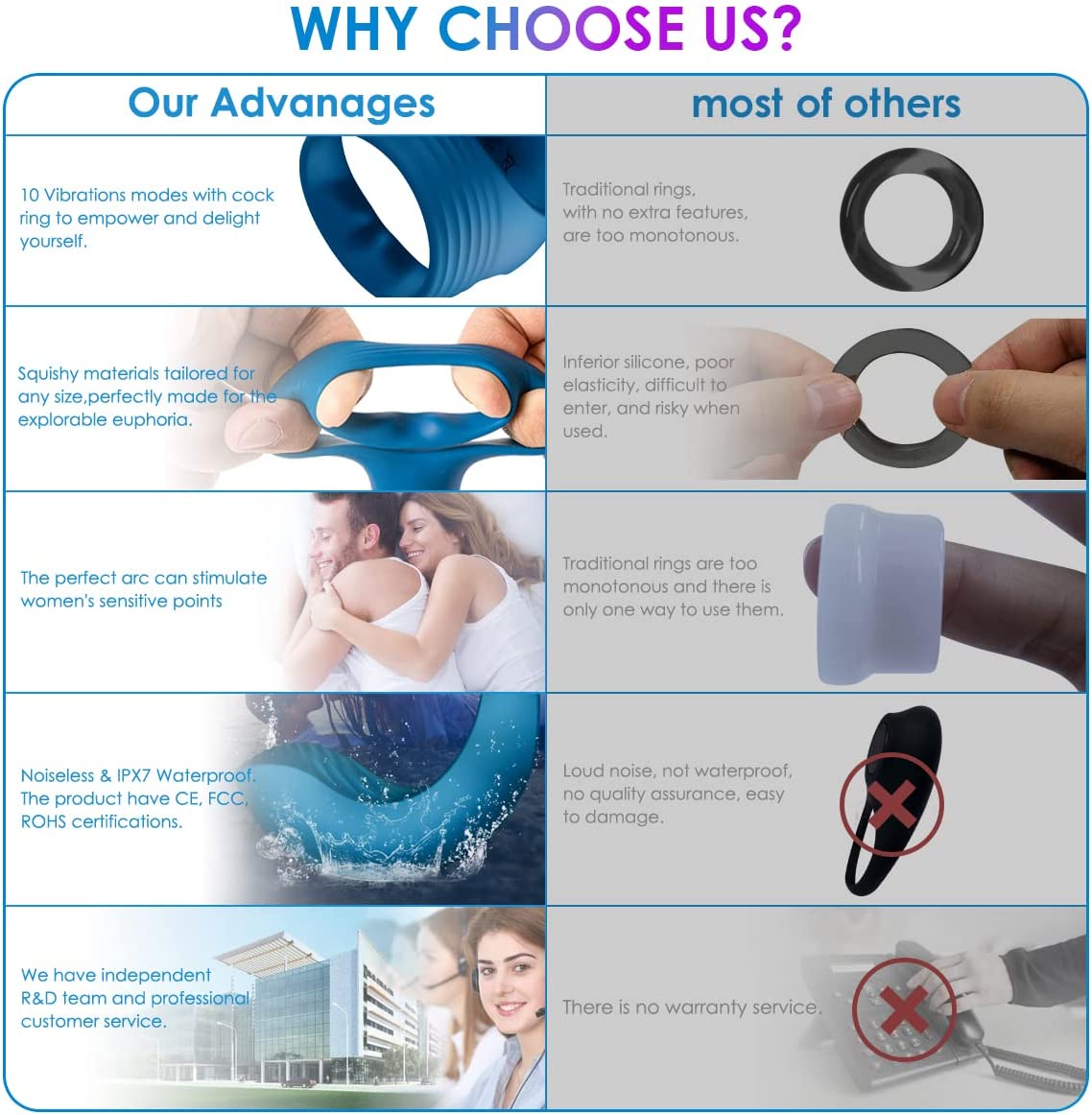 Vibrating Cock Ring Sex Toys - ZEMALIA Penis Ring with 10 Vibrations for Men Erection Enhancing and Perineum Stimulator 3 in 1 Male Masturbator or Female G-Spot Vibrator, Adult Toy for Couples Fun