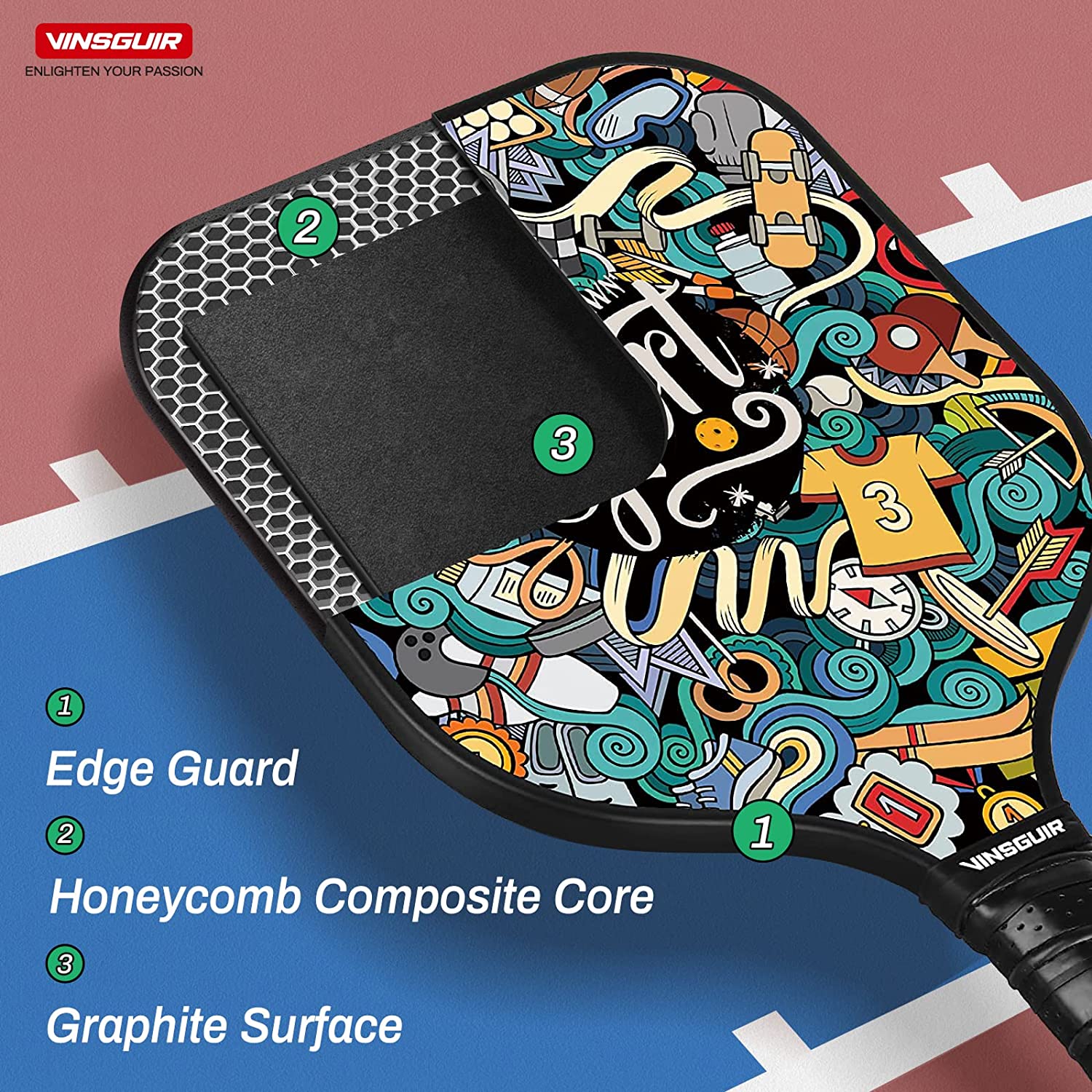 Vinsguir Pickleball Paddles Set-USAPA Approved Graphite Pickleball Set of 2 Rackets and 4 Pickleballs Balls, Pickleball Racquet with Portable Pickleball Bag for Beginners and Professional Players