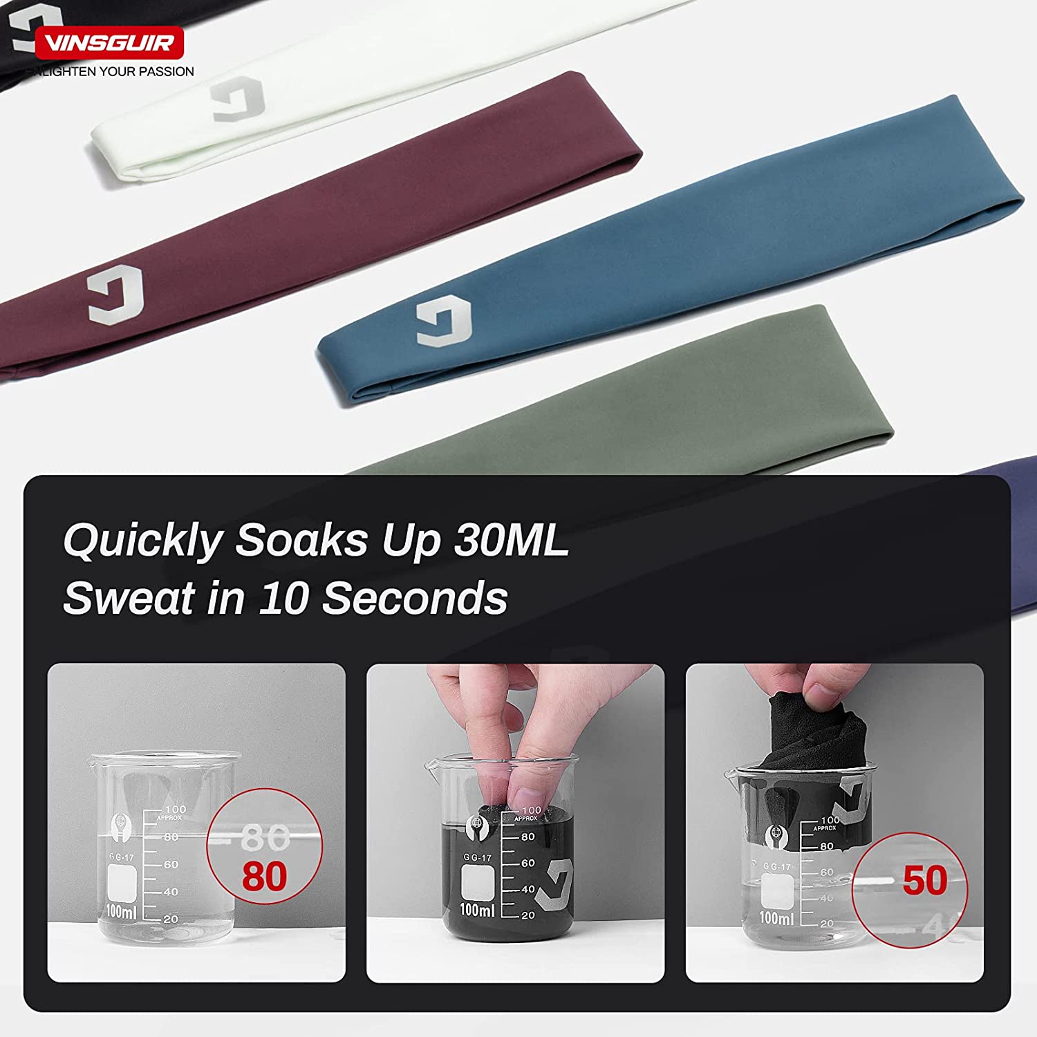 Vinsguir Sports Headbands Pack of 6, Mens Workout Headband Accessories, Sweat Band, Sweat Wicking Head Band Sweatbands for Running Gym Training Tennis Basketball Football, Unisex Hairband