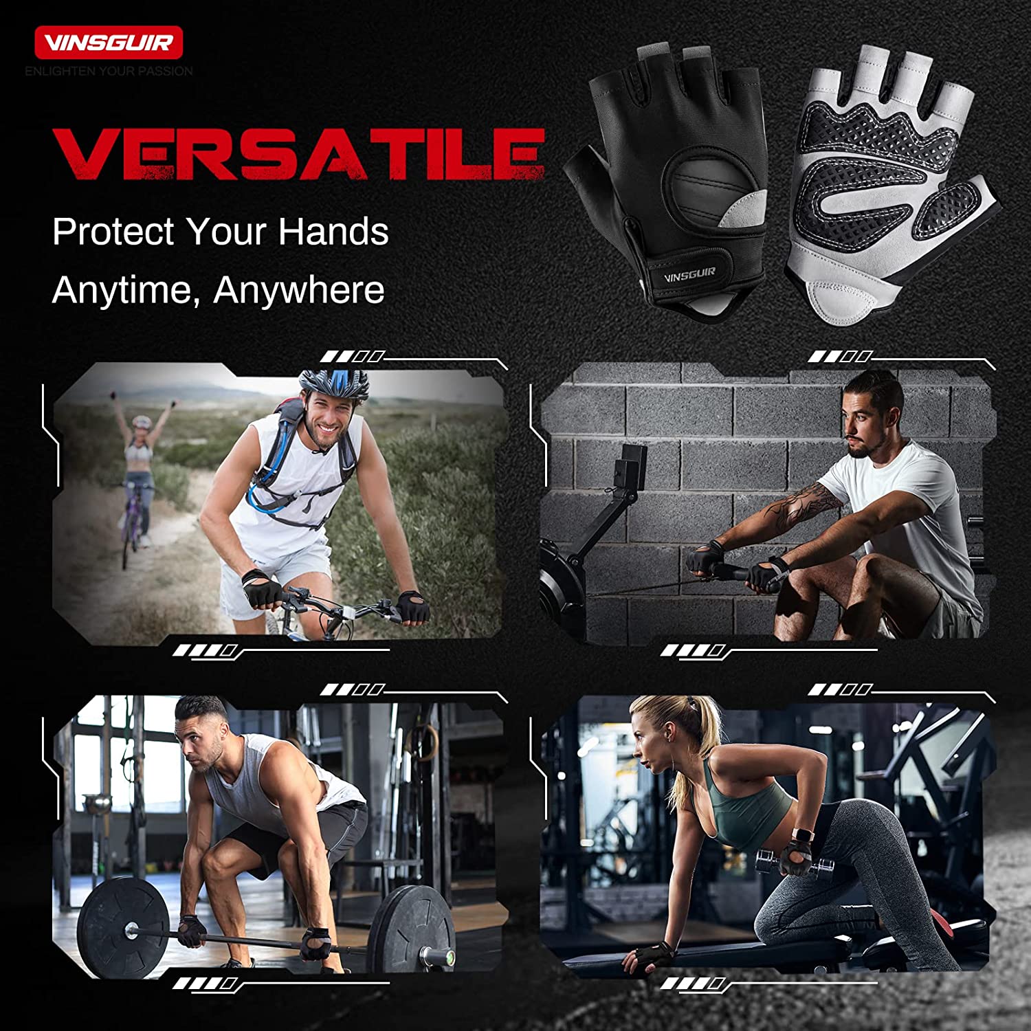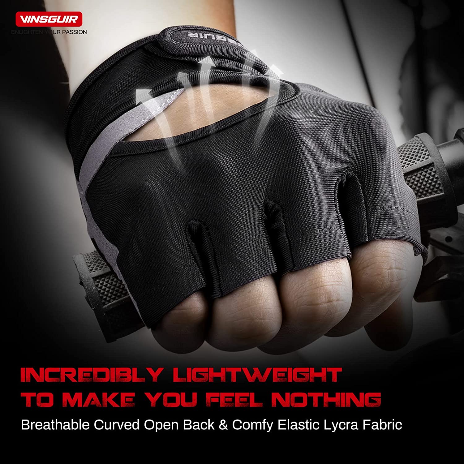 Vinsguir Workout Gloves for Men and Women, Fingerless Weight Lifting Gloves for Exercise, Lightweight Breathable Gym Gloves for Weightlifting, Fitness, Training, Climbing, Cycling and Rowing