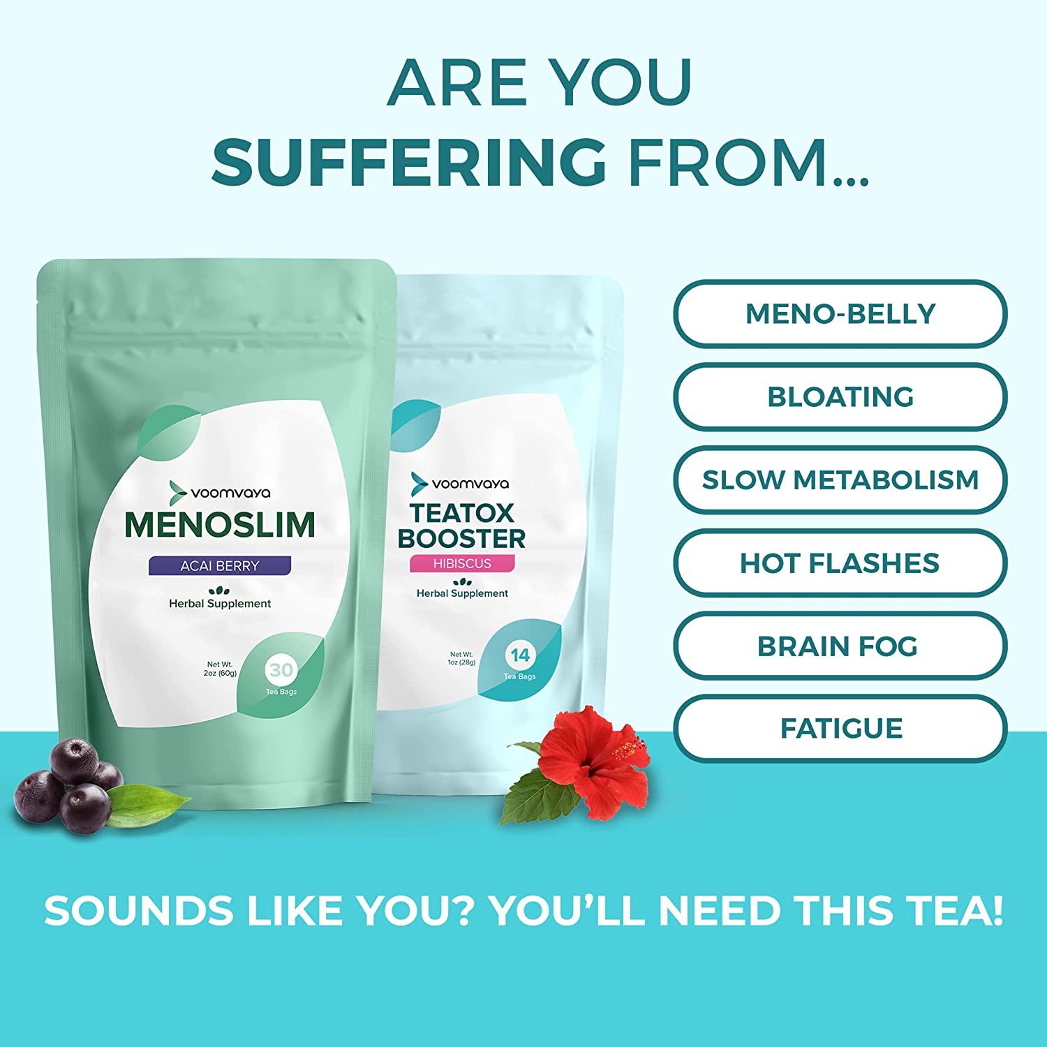 VoomVaya TeaTox Booster Detox Tea - 14-Day Herbal Detox Tea for Menopausal Women with Senna Leaf, Dandelion, Cardamom, Matcha - Healthy Metabolism & Balance Hormone - Hibiscus Flavor 14 Tea Bags