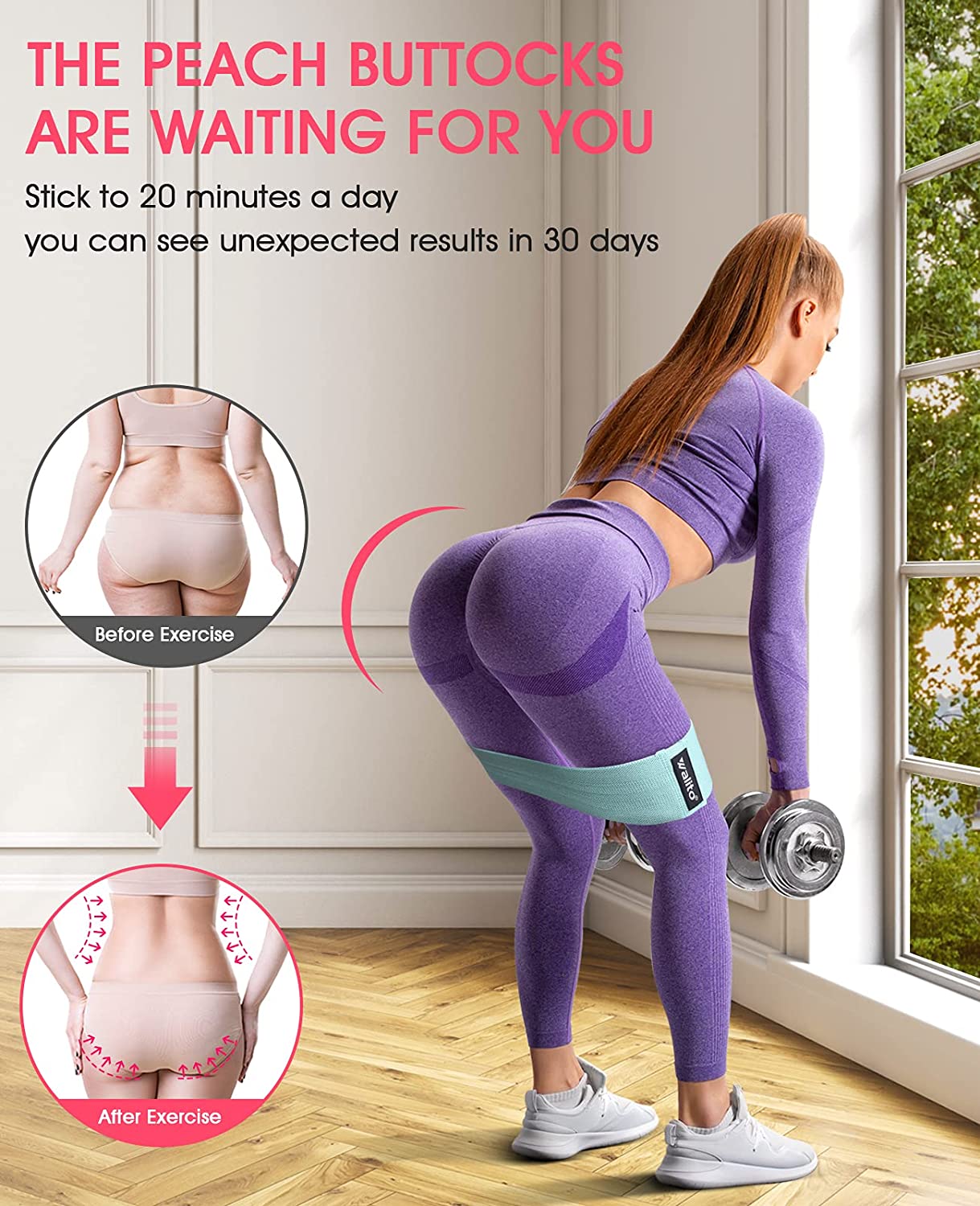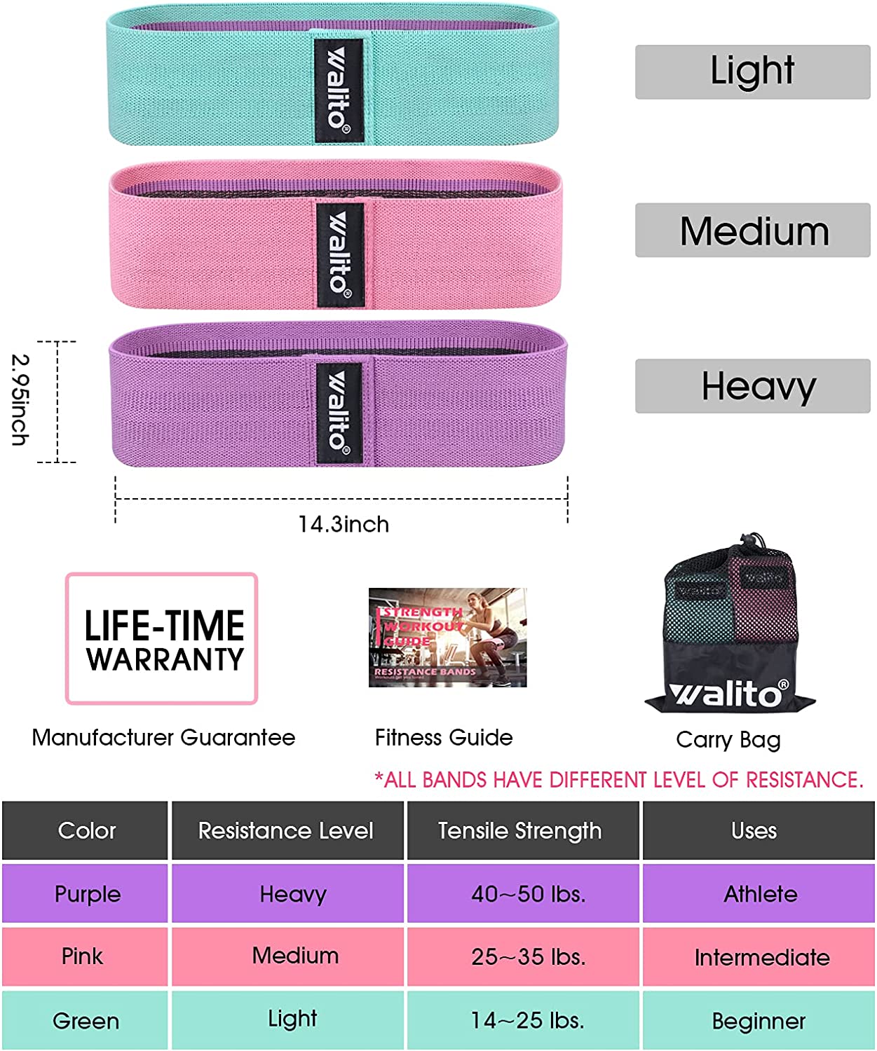 WALITO Resistance Bands for Legs and Butt, Fabric Exercise Loop Bands Yoga, Pilates, Rehab, Fitness and Home Workout, Strength Bands for Booty