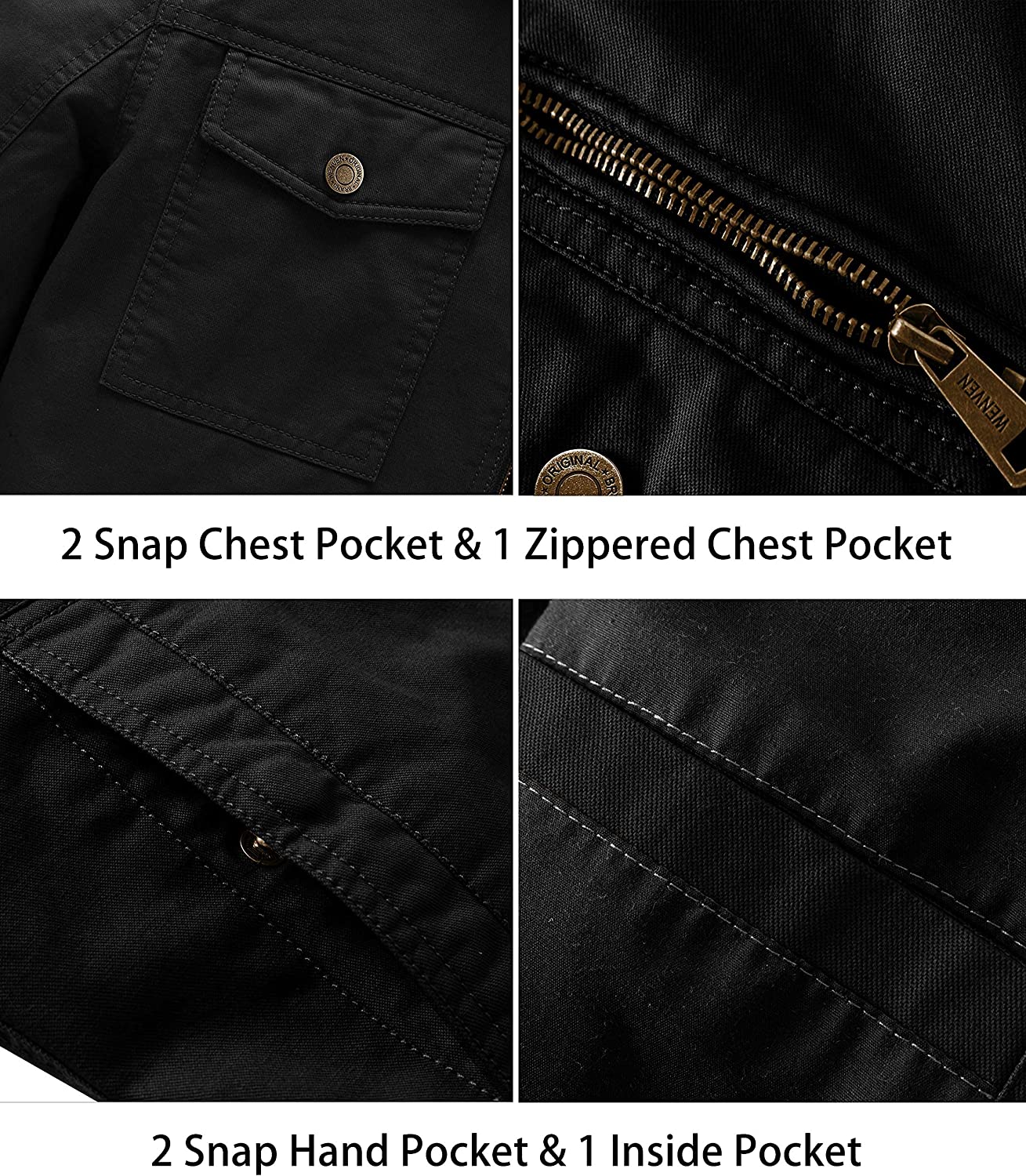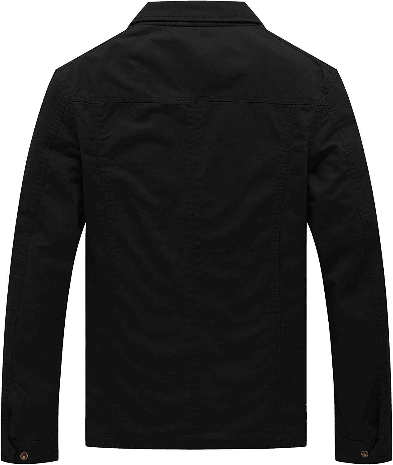 WenVen Men's Casual Canvas Cotton Military Lapel Jacket