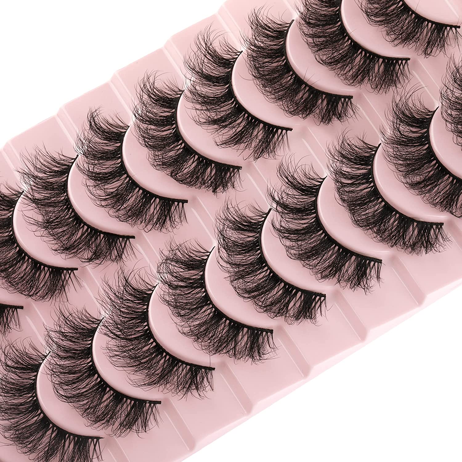 wiwoseo Eyelashes Natural Faux Mink Lashes Wispy Fluffy Curly 3D Effect Fake Eyelashes 10 Pairs Pack