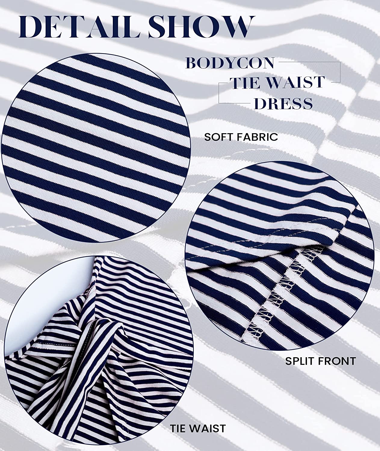 Women Casual Sleeveless Striped Tank Midi Dresses Halter Neck Ruched Bodycon Dresses Tie Waist T Shirt Summer Dress